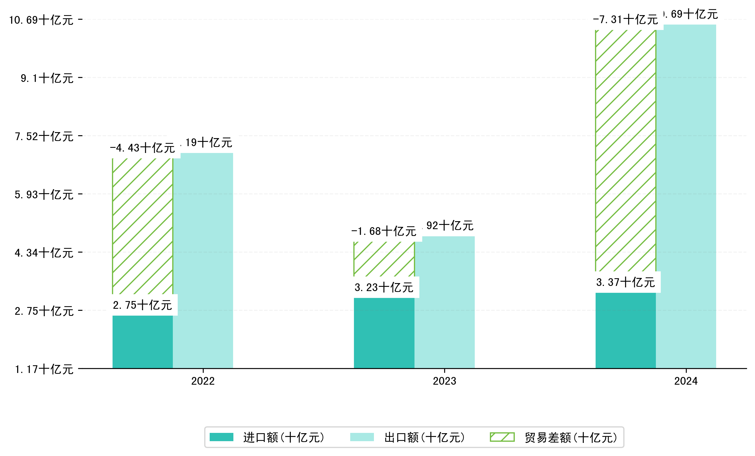 以美元计,2024年1-7月株洲市贸易差额为10,2969,8418万美元(贸易顺差),相比上年同期增加了7,8752,0870万美元,同比增加325.18%。