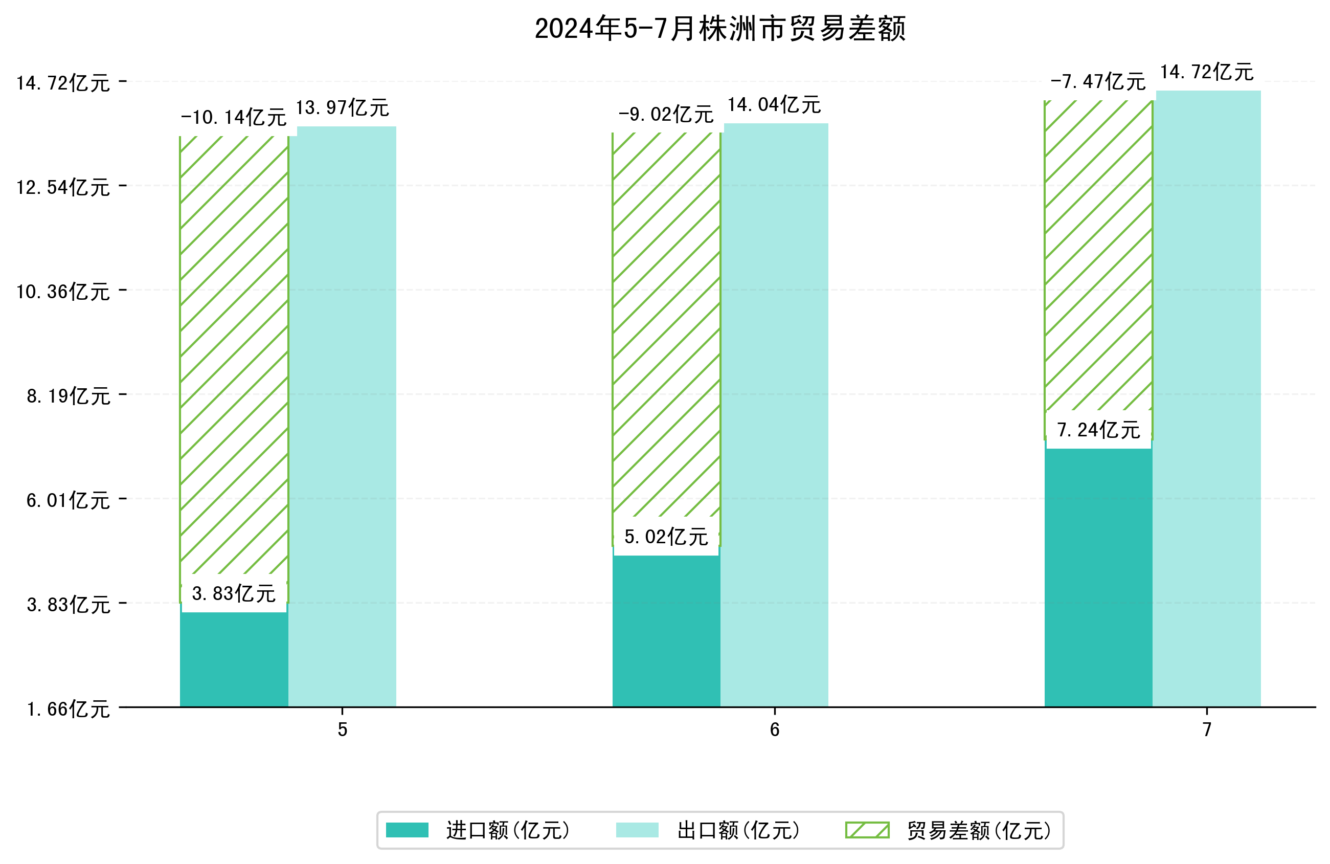 2024年7月株洲市进出口总额及进出口差额统计分析