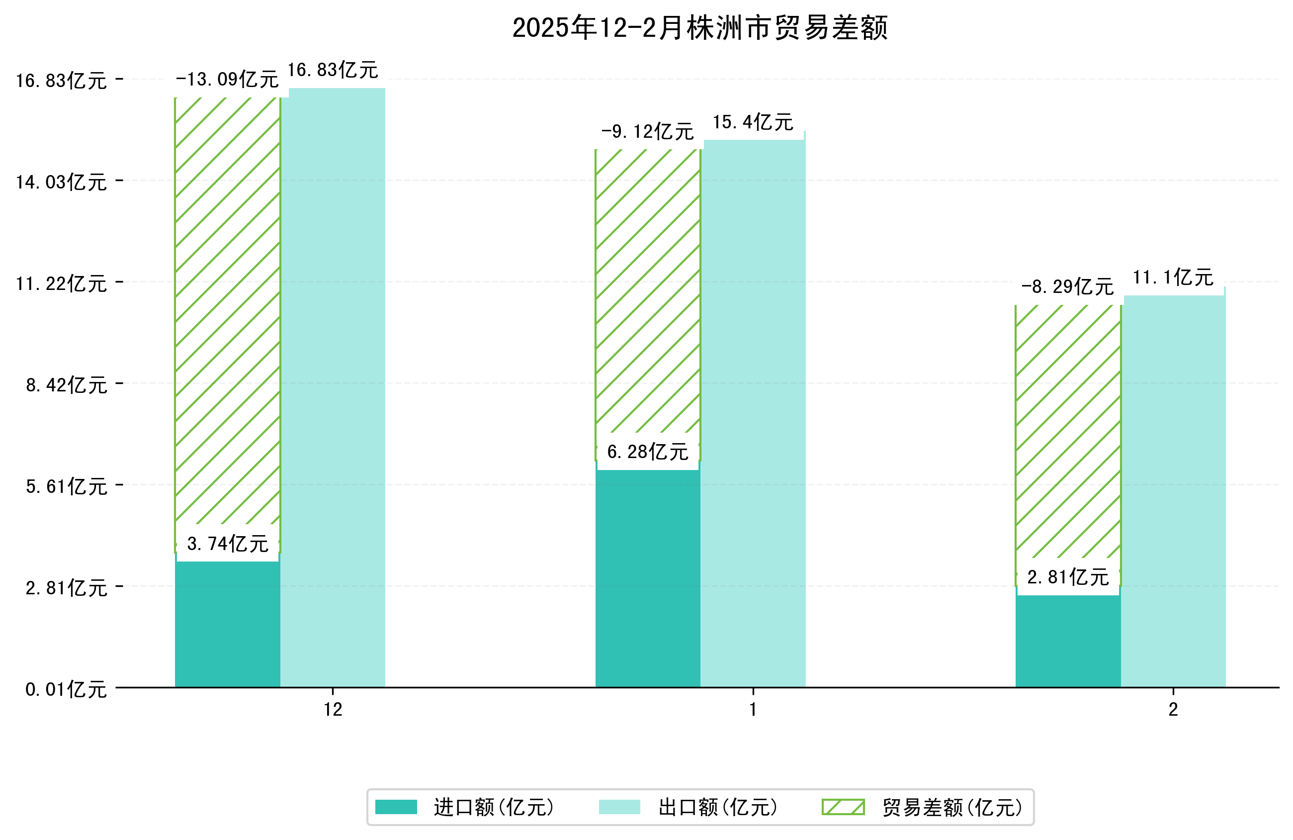 2025年2月株洲市进出口总额及进出口差额统计分析
