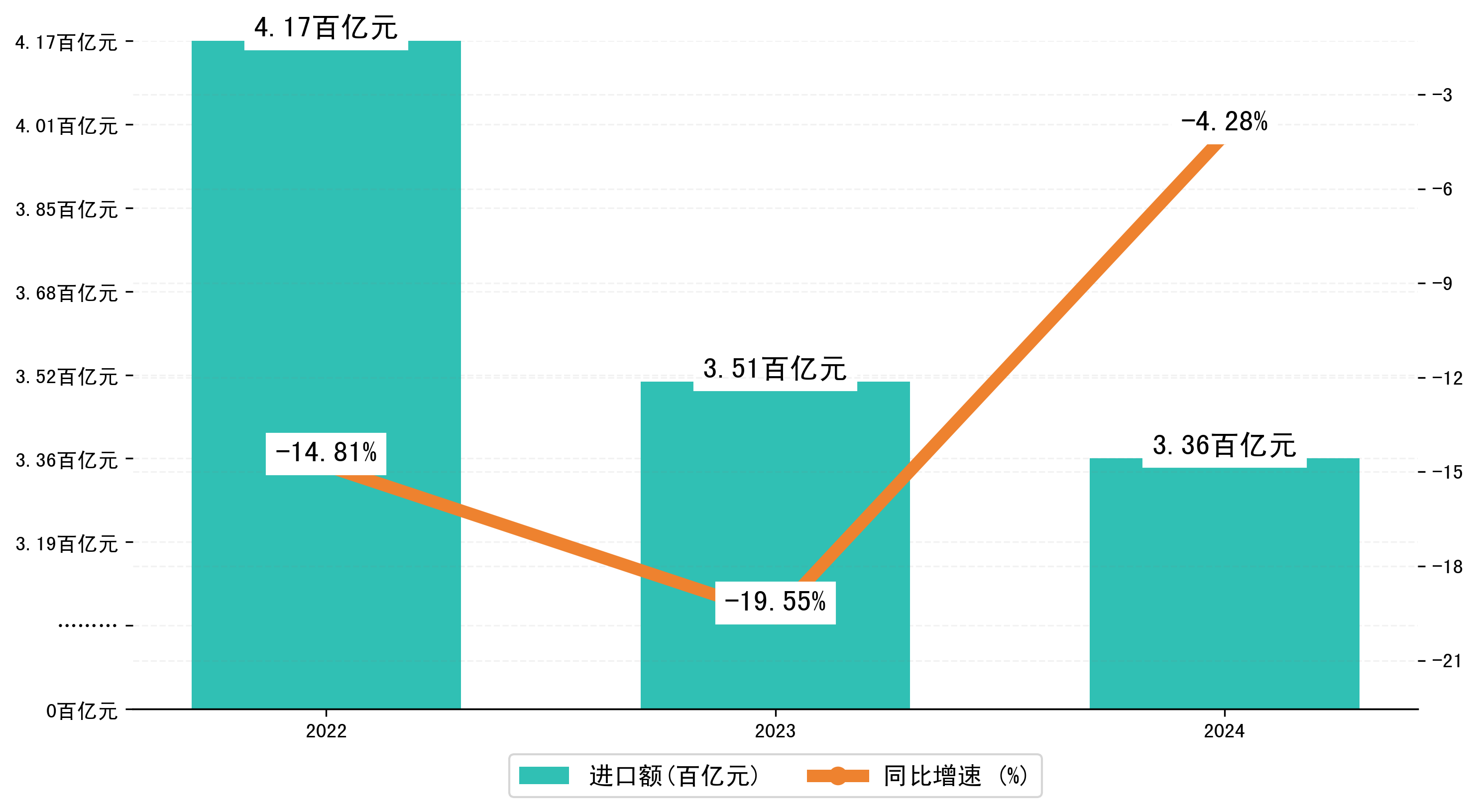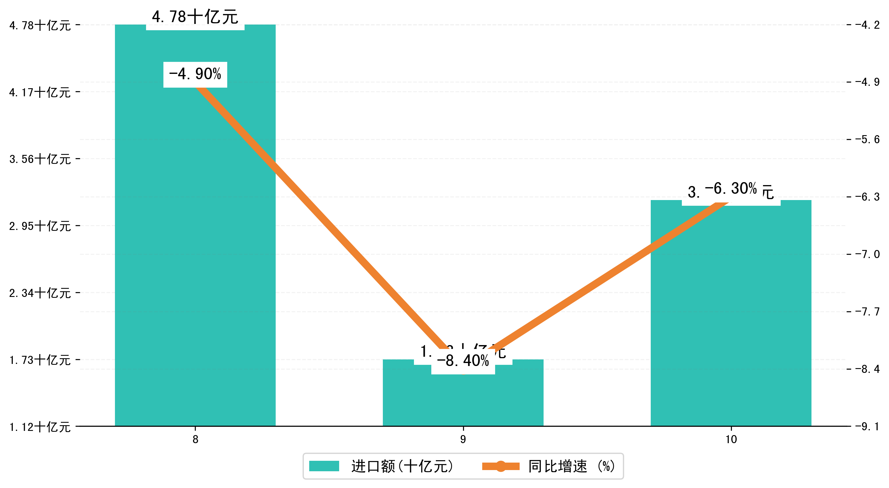 以人民币计,2024年1-10月淄博市进口额为335,6452.5809万元,相比上年同期减少了15,0039.6237万元,同比减少了-6.30%。