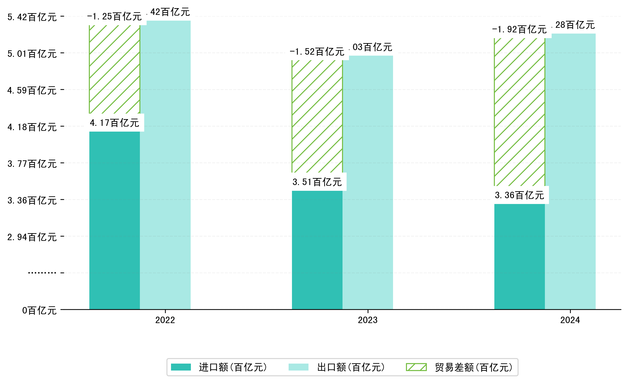 以美元计,2024年10月淄博市贸易差额为2,8586,4016万美元(贸易顺差),相比上月减少了2,2755,9161万美元;相比上年同期减少了1,2570,3337万美元,同比减少-30.54%。