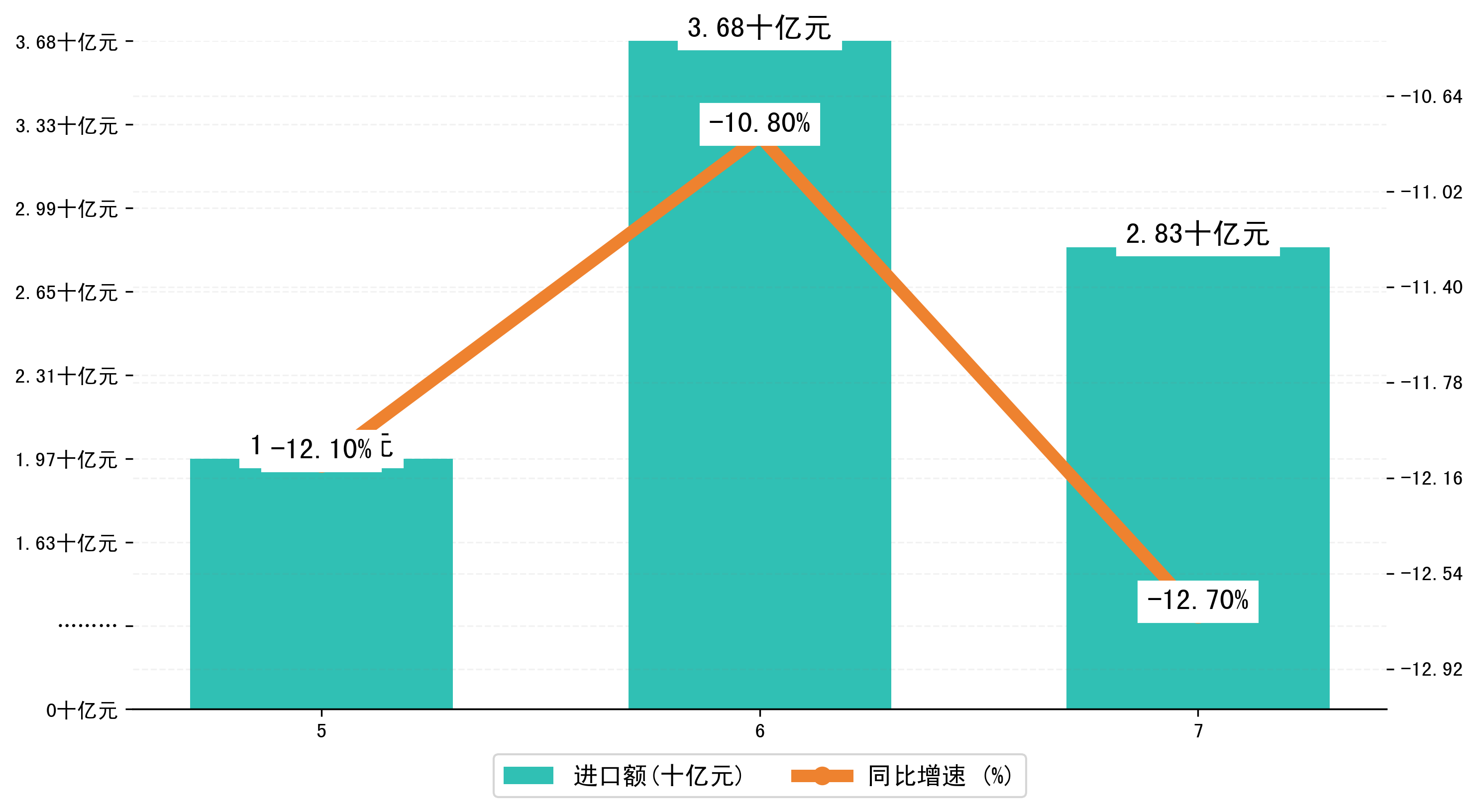 以人民币计,2024年7月淄博市进口额为28,3392.9022万元,相比上月减少了8,4210.8626万元;相比上年同期减少了6,7932.8679万元,同比减少了-12.70%。