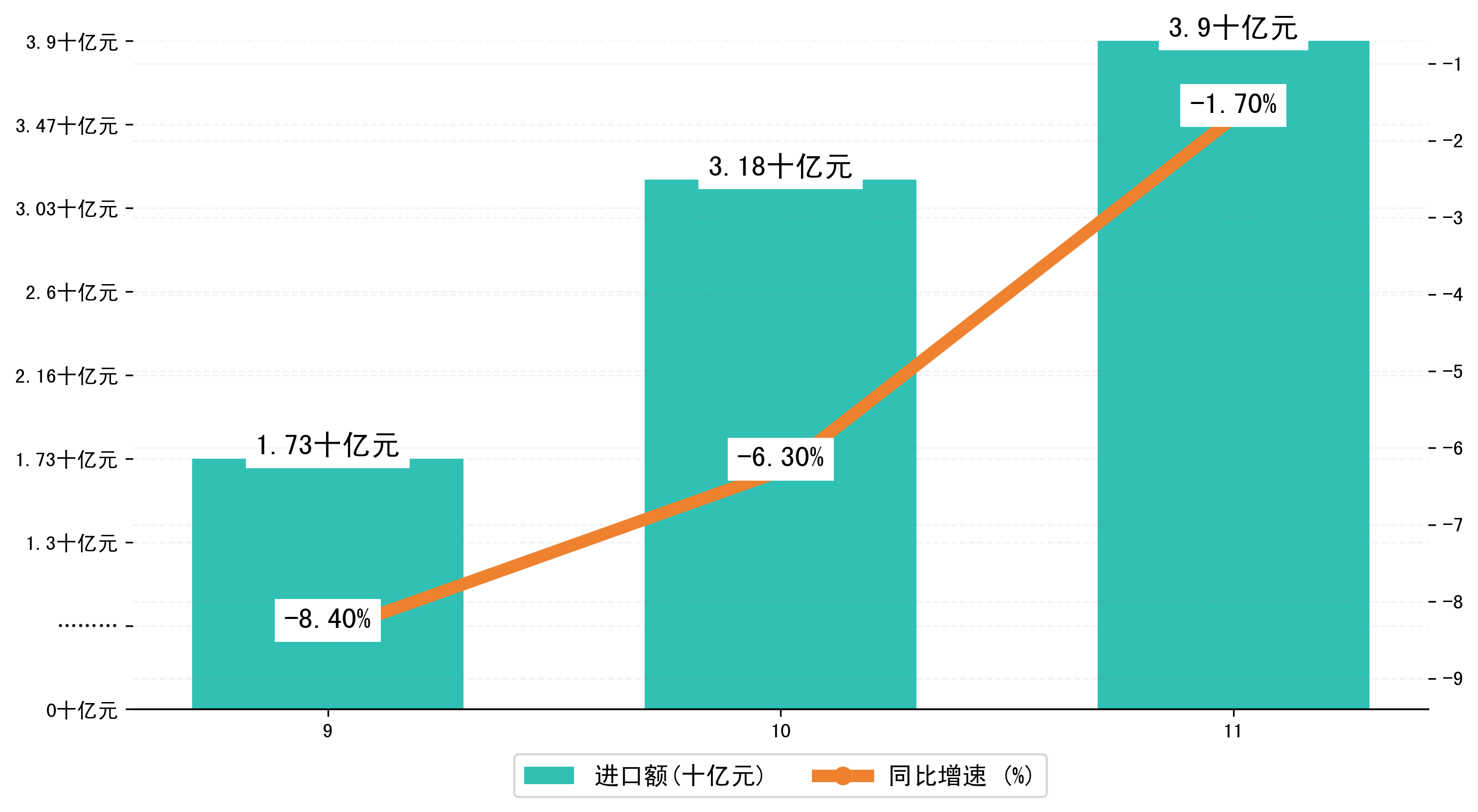 以美元计,2024年1-11月淄博市进口额为52,7182.0587万美元,相比上年同期减少了1,3955.5435万美元,同比减少-3.00%。