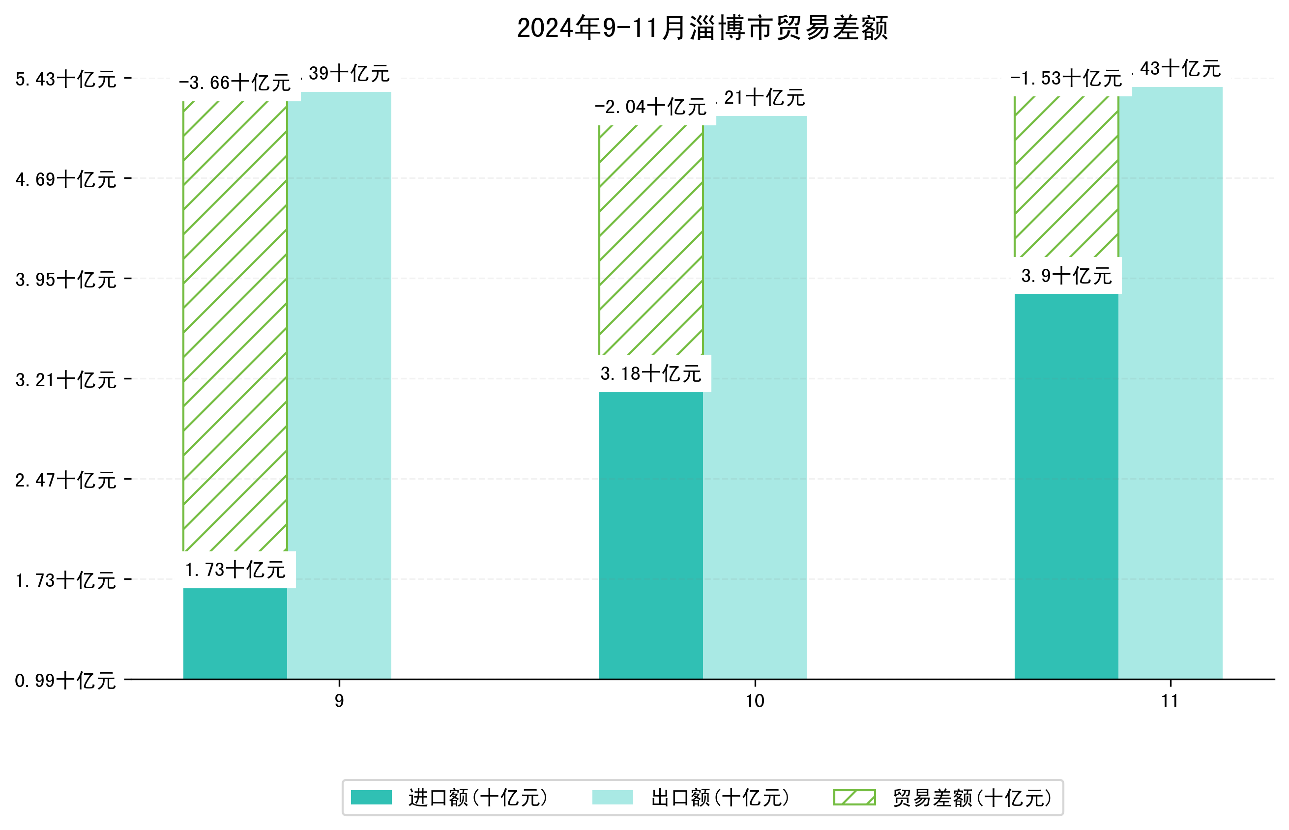 2024年11月淄博市进出口总额及进出口差额统计分析