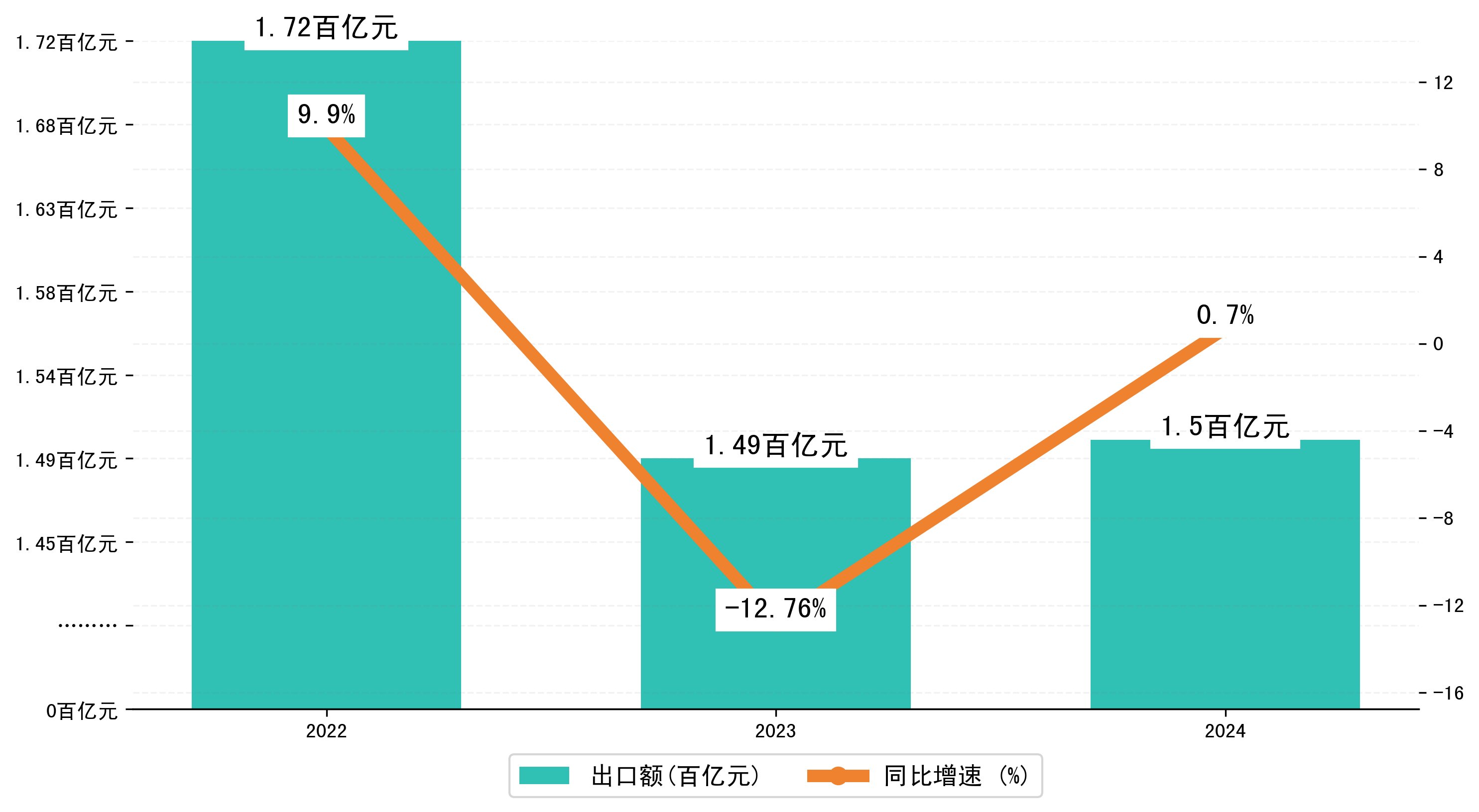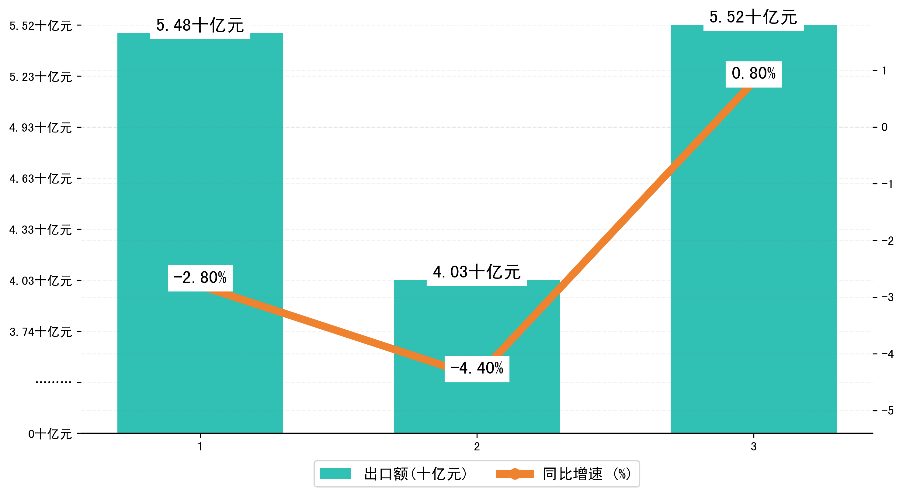 以人民币计,2024年1-3月淄博市出口额为150,3196.8834万元,相比上年同期增加了1,0402.4979万元,同比增加了0.80%。