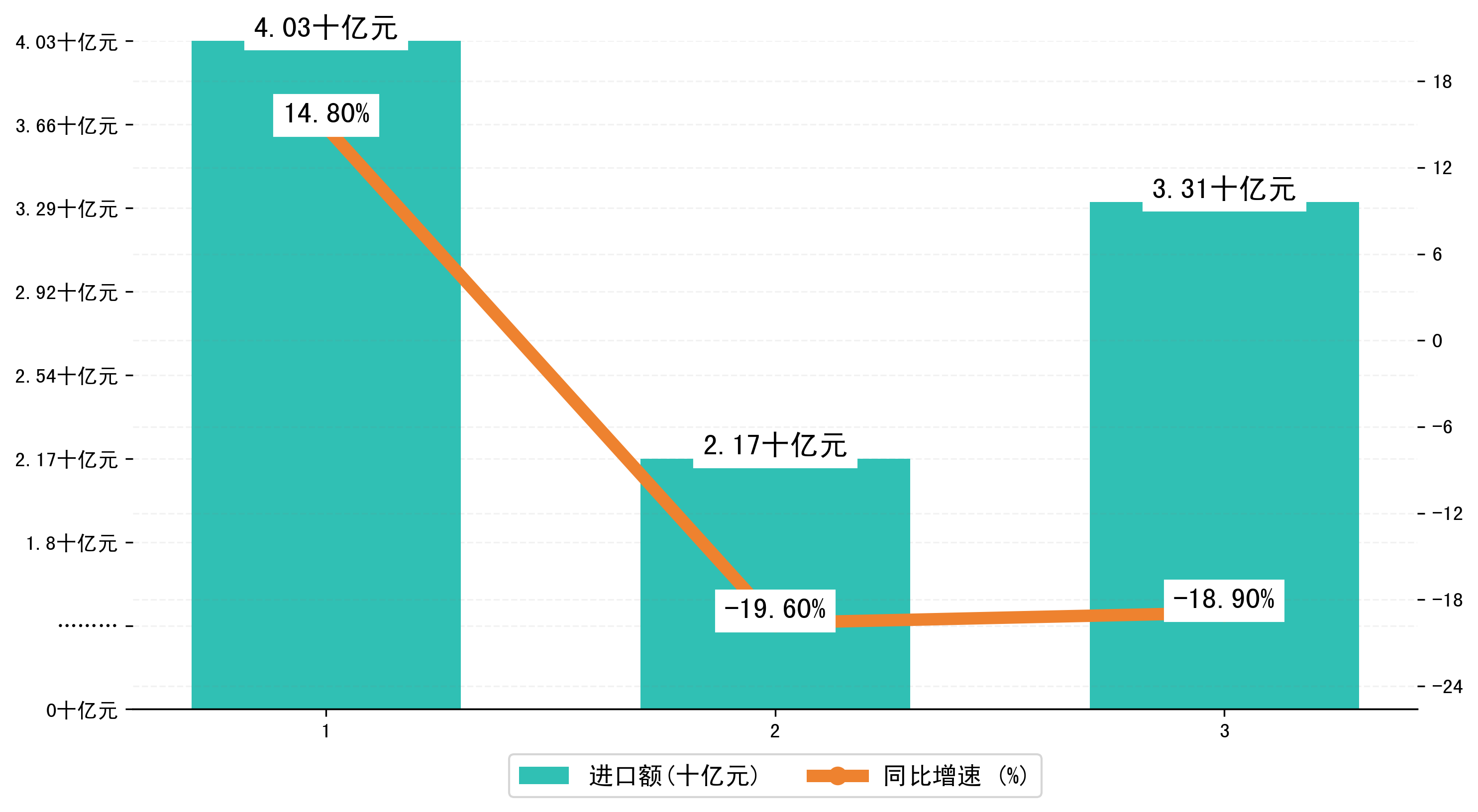 以人民币计,2024年3月淄博市进口额为33,1389.3425万元,相比上月增加了11,4391.6943万元;相比上年同期减少了3,8123.1779万元,同比减少了-18.90%。
