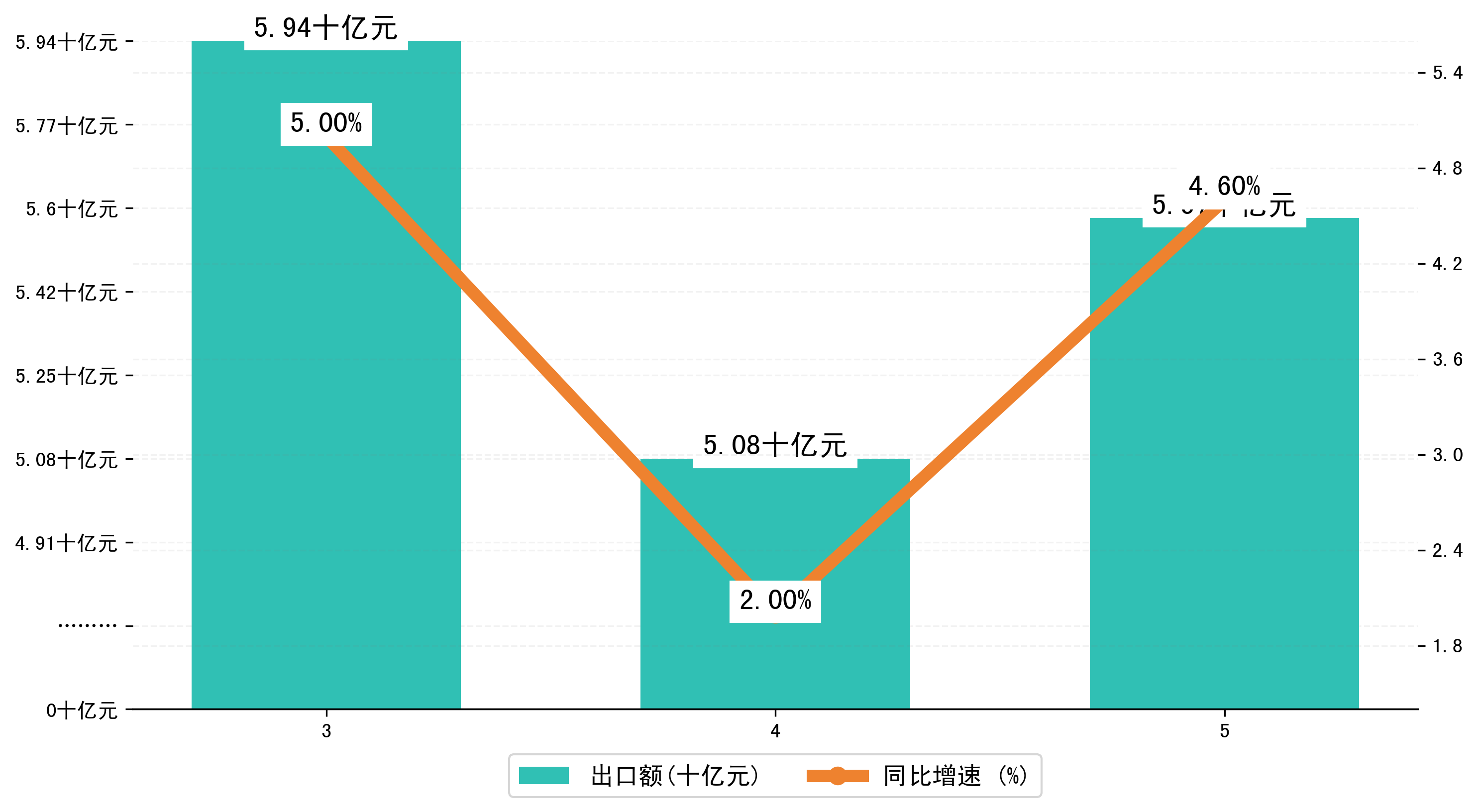 以美元计,2025年1-5月淄博市进出口总额为59,3518.0796万美元,相比上年同期增加了1,2543.0058万美元,同比增加0.30%。