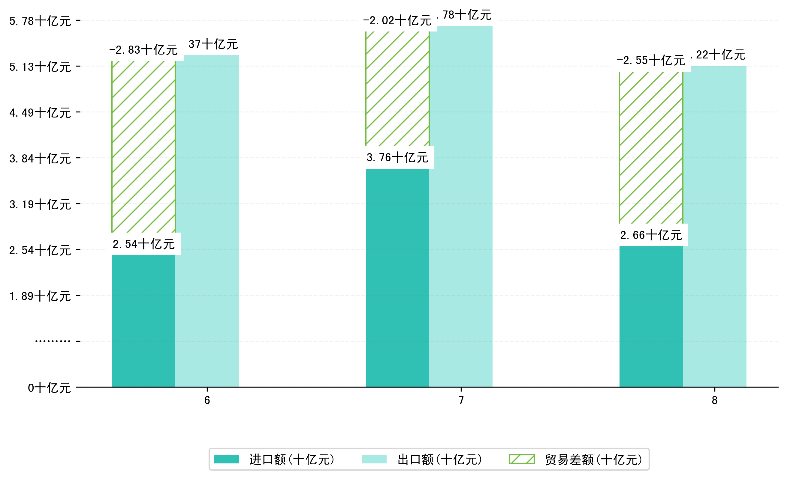 (图一:2025年6-8月淄博市进出口总额)