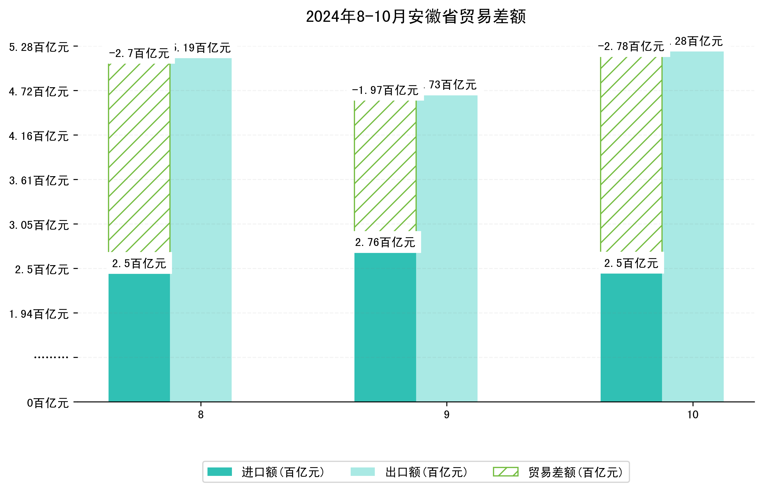 2024年10月安徽省进出口总额及进出口差额统计分析