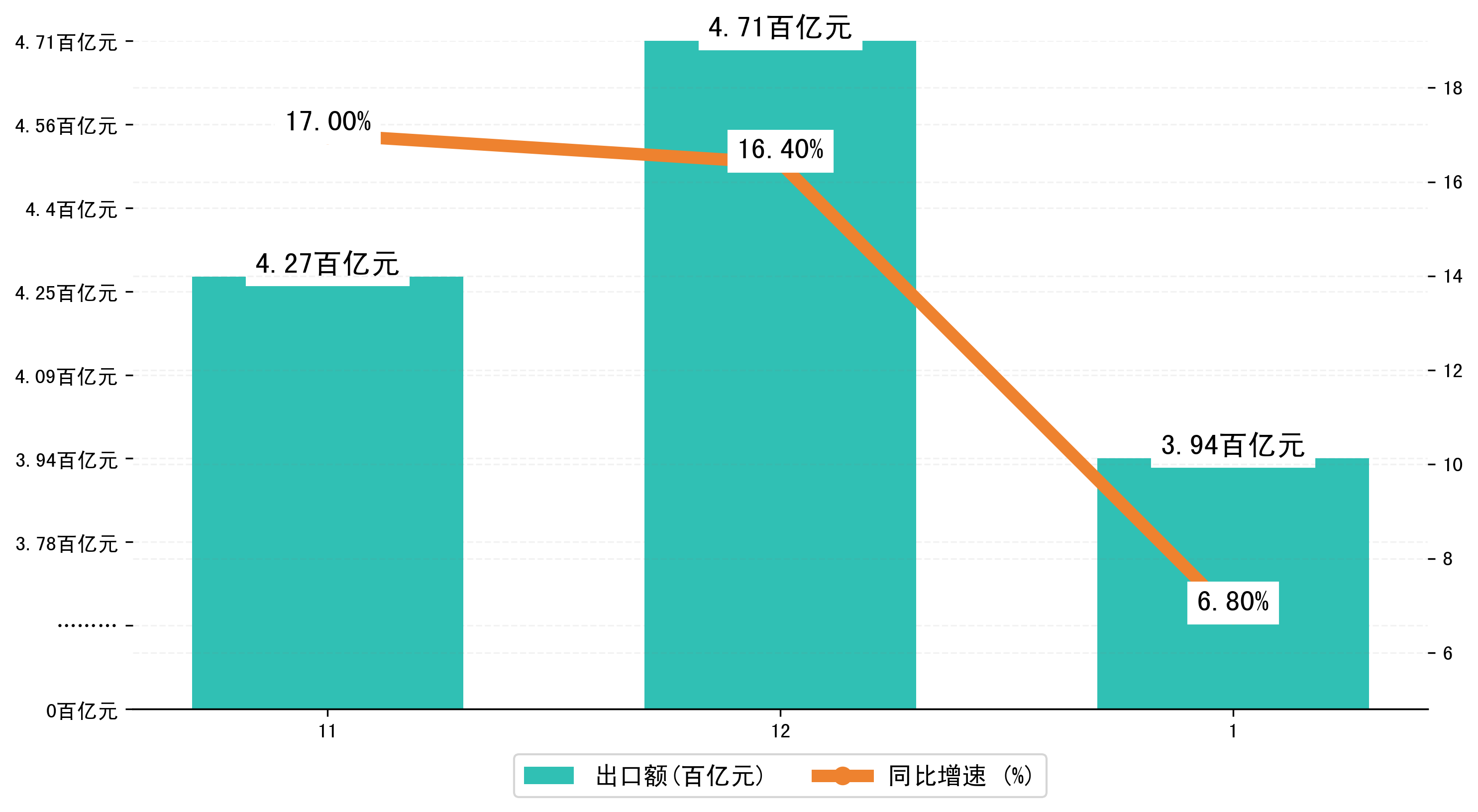 (图二:2023年11-1月安徽省出口额)