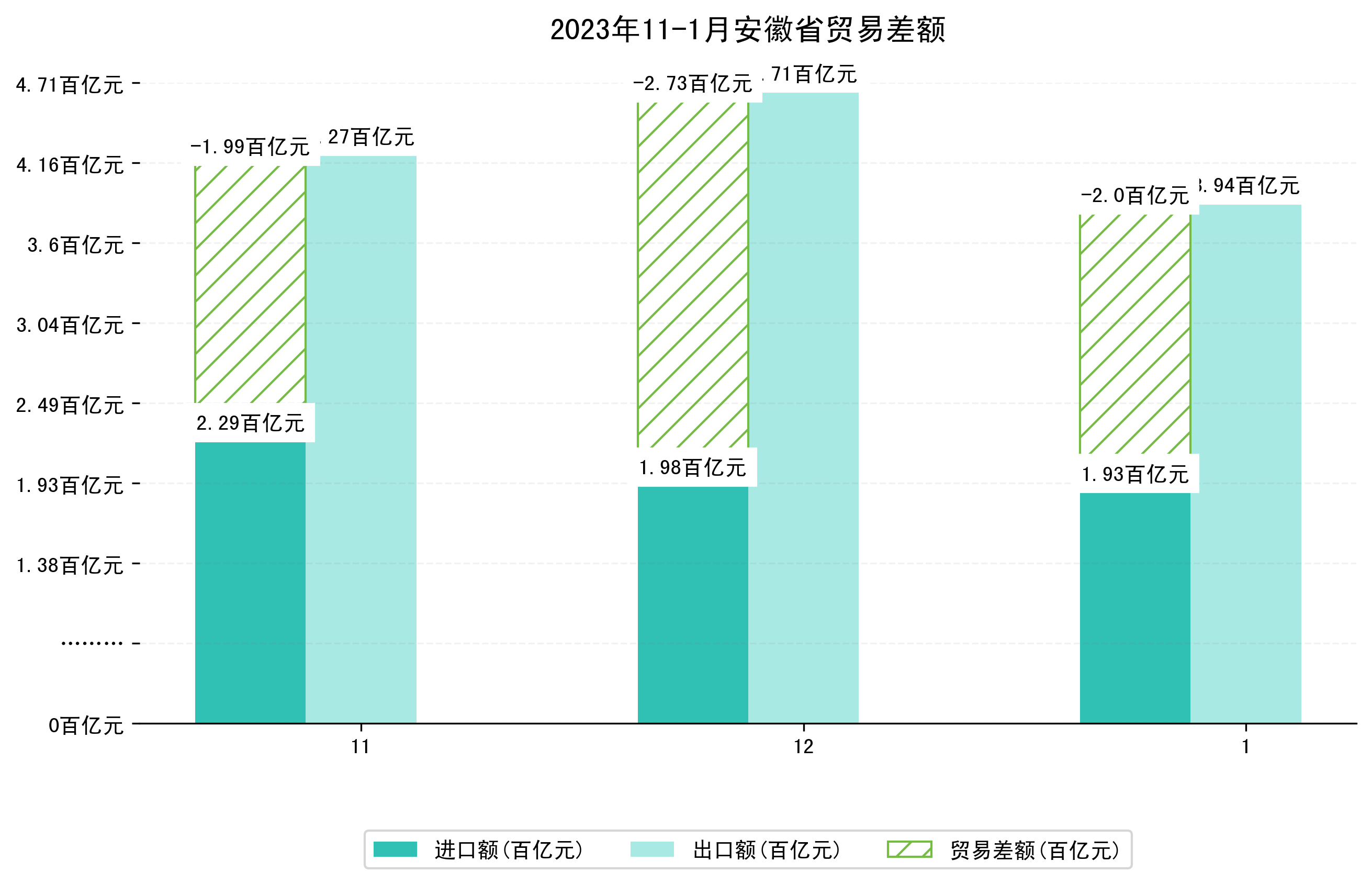 (图四:2023年11-1月安徽省贸易差额)