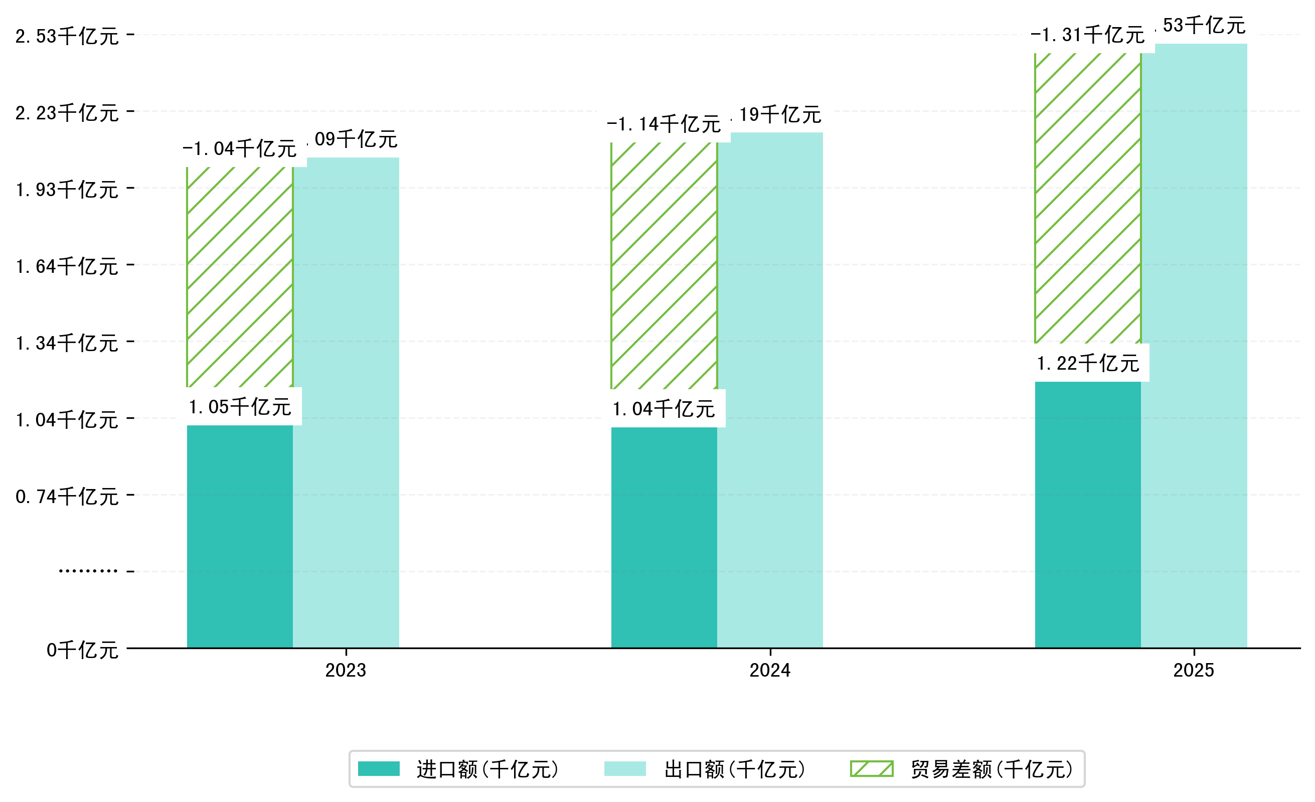 以人民币计,2025年1-5月安徽省贸易差额为1313,3331,9587万元(贸易顺差),相比上年同期增加了168,7632,4288万元,同比增加14.74%。