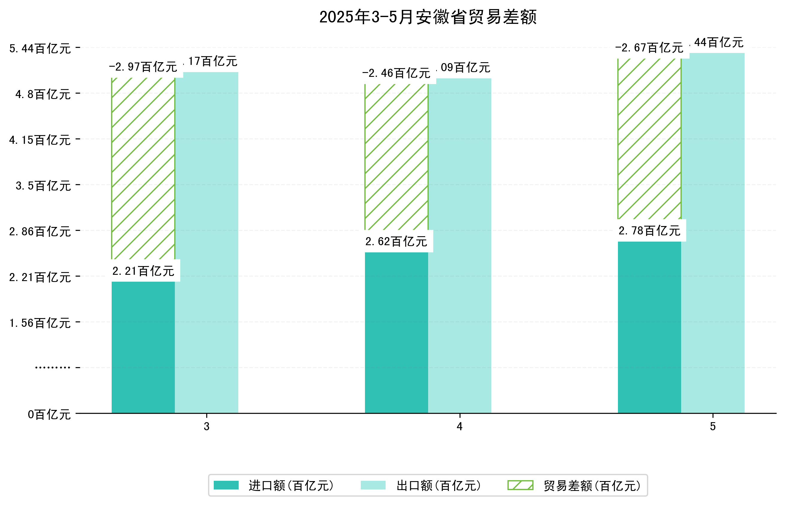 2025年5月安徽省进出口总额及进出口差额统计分析