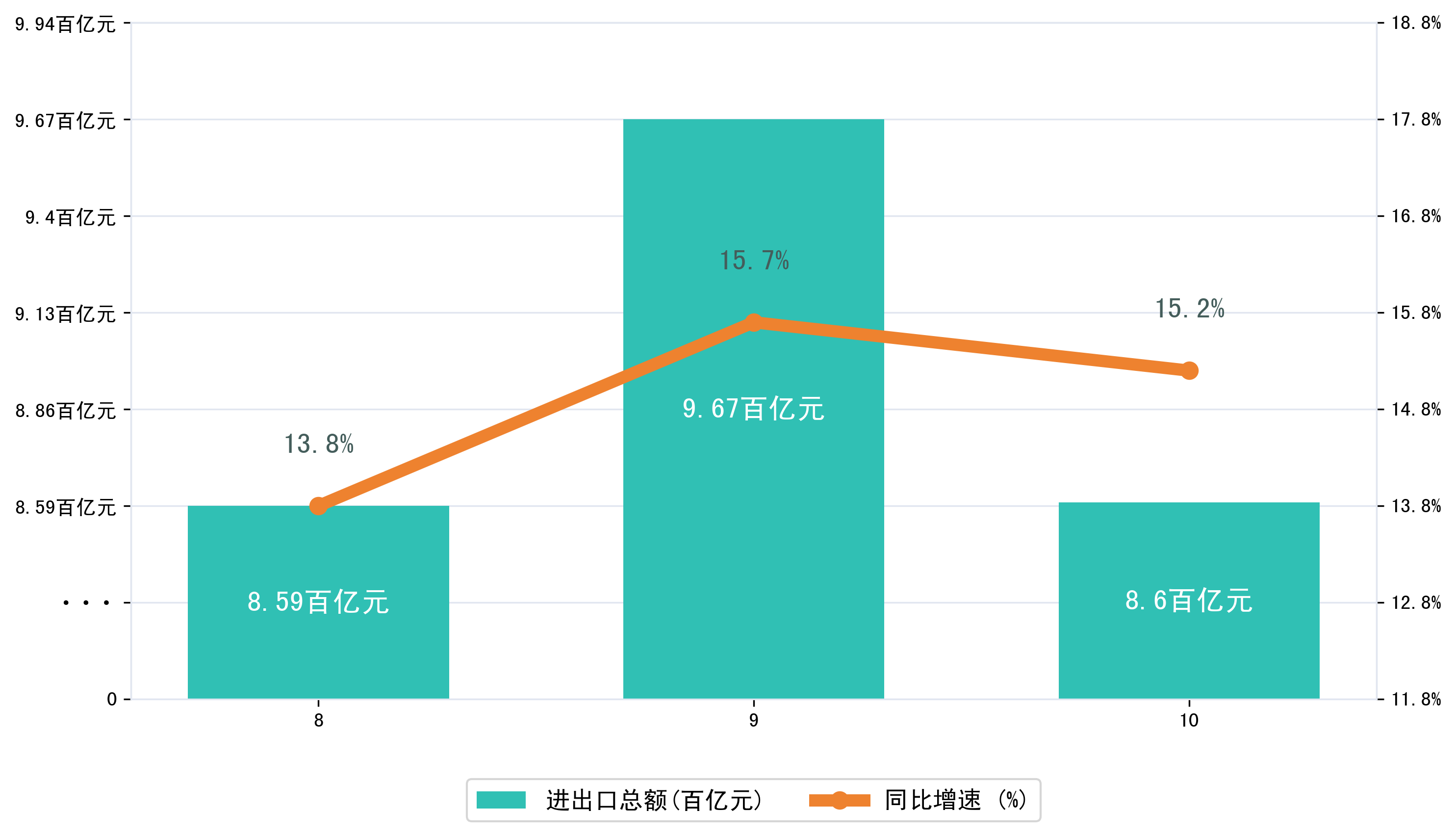 (图一:2025年8-10月安徽省进出口总额)