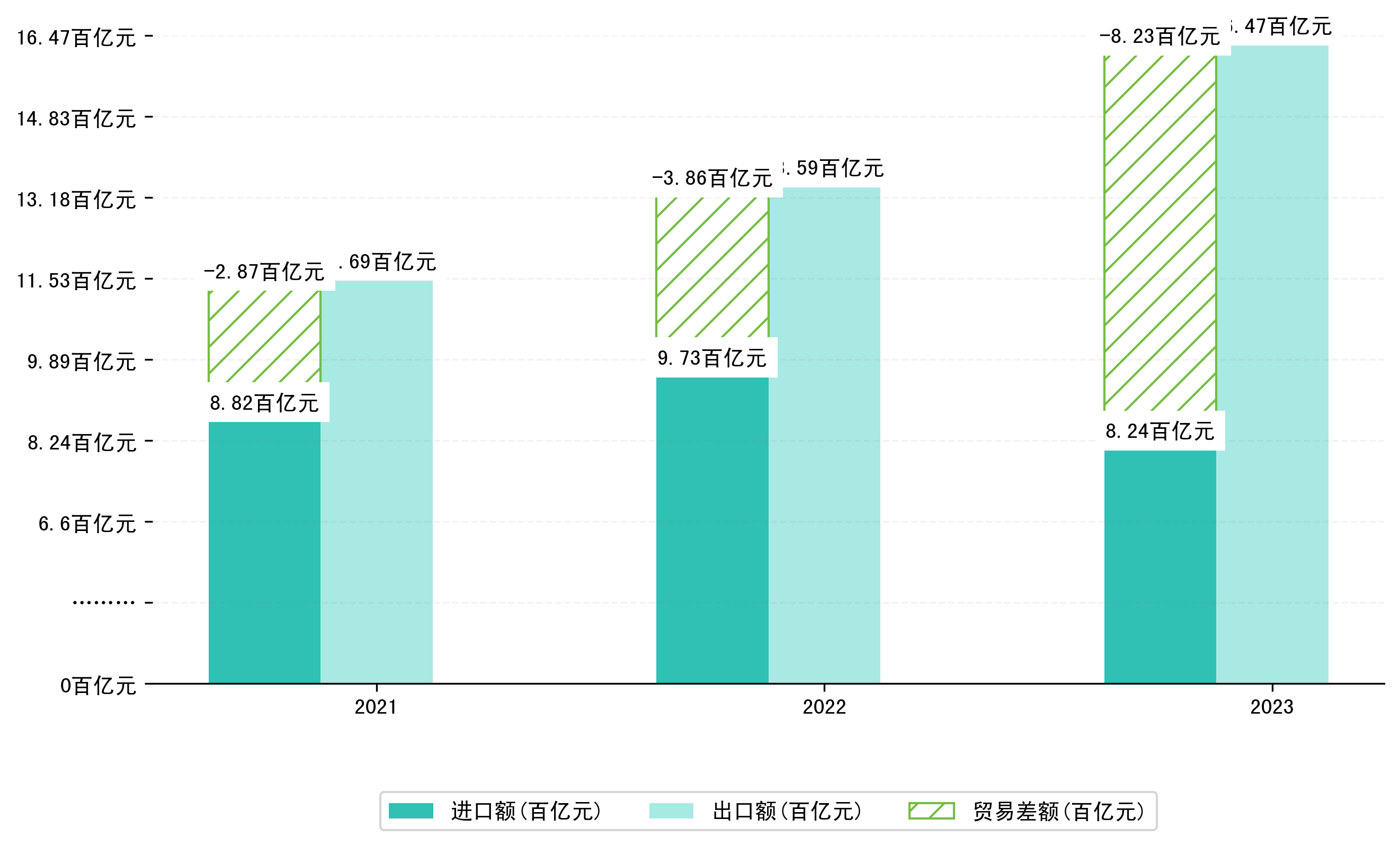 以美元计,2023年1-4月安徽省贸易差额为119,7799,9825万美元(贸易顺差),相比上年同期增加了59,0387,4413万美元,同比增加97.2%。