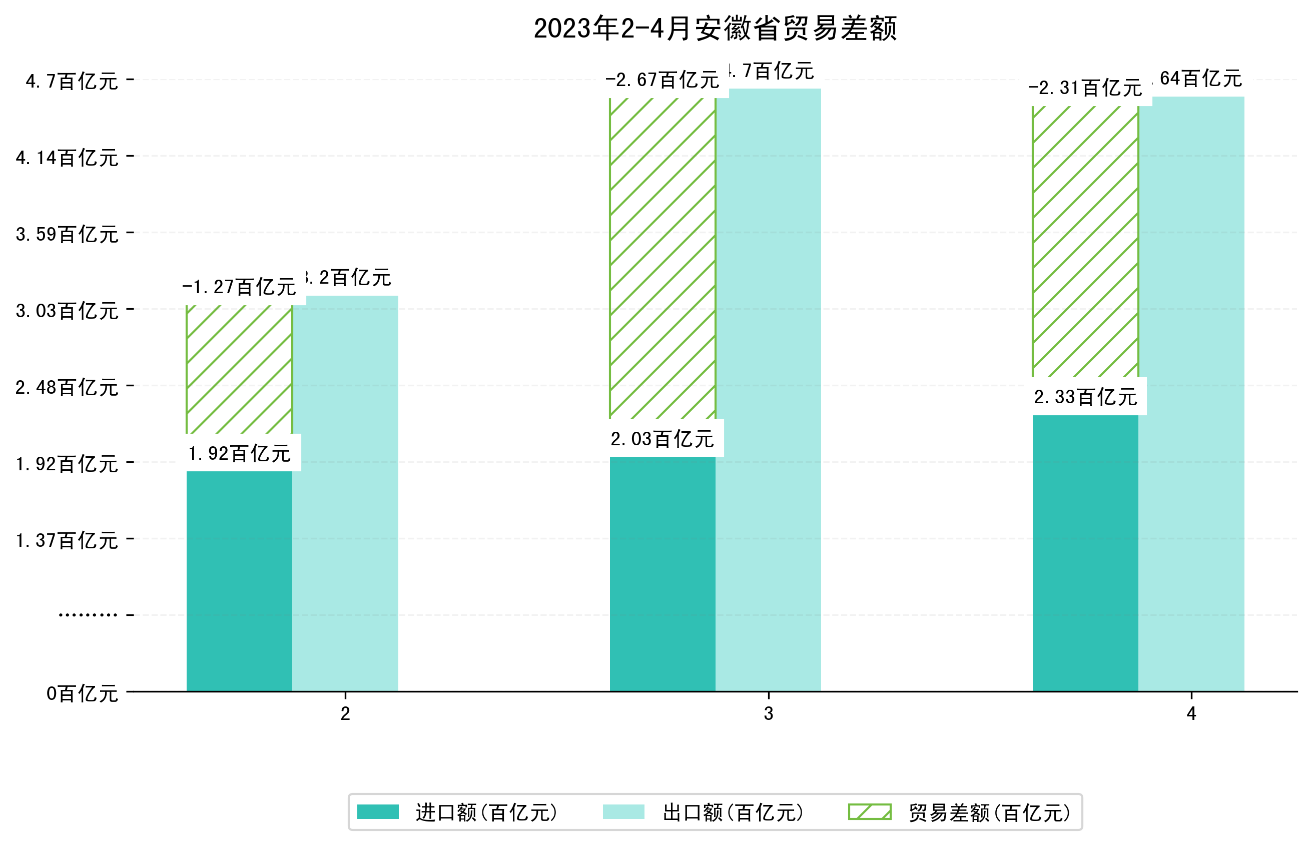 2023年4月安徽省进出口总额及进出口差额统计分析