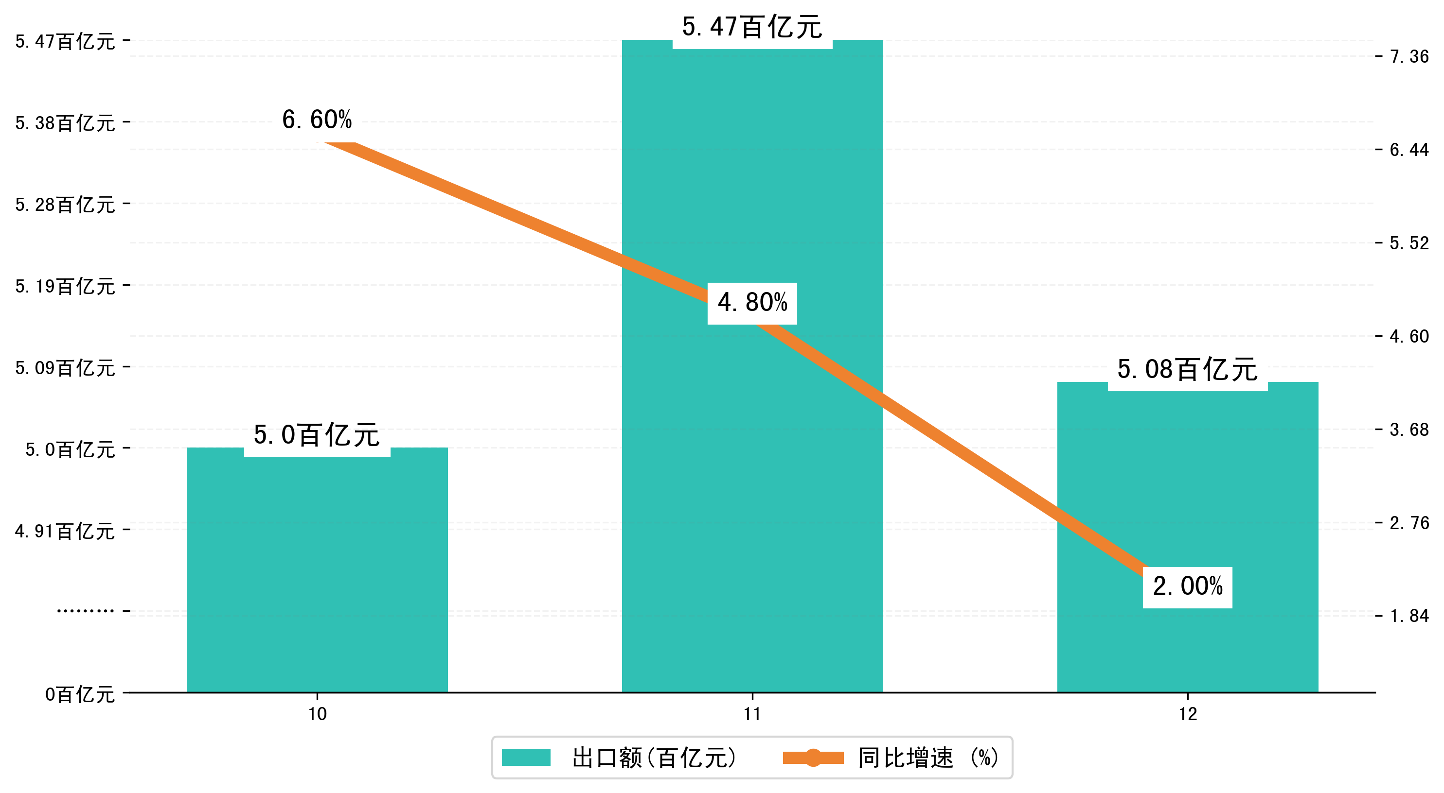 以人民币计,2023年12月北京市出口额为507,5487.9083万元,相比上月减少了39,5079.3886万元;相比上年同期减少了140,4050.6236万元,同比增加了2.00%。