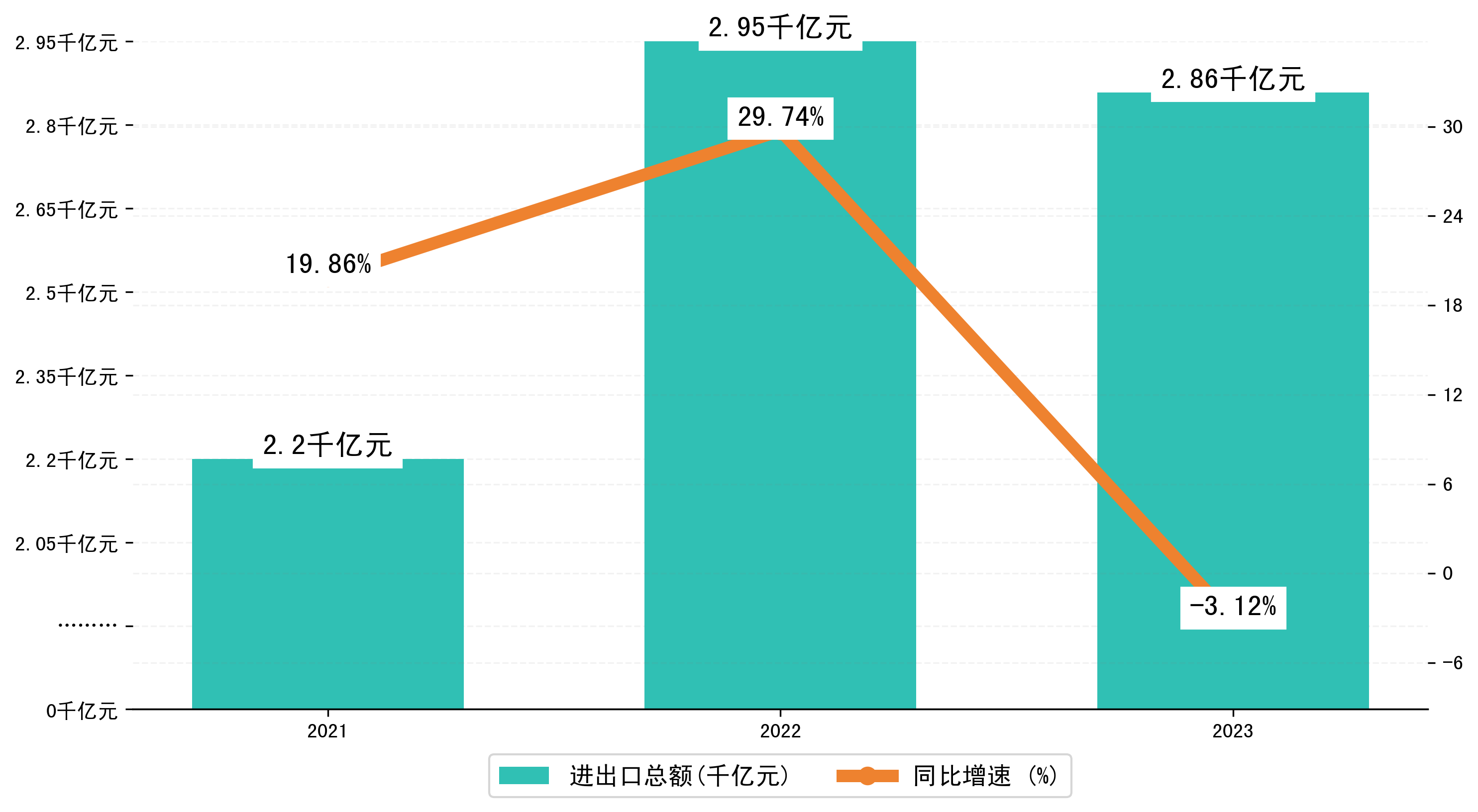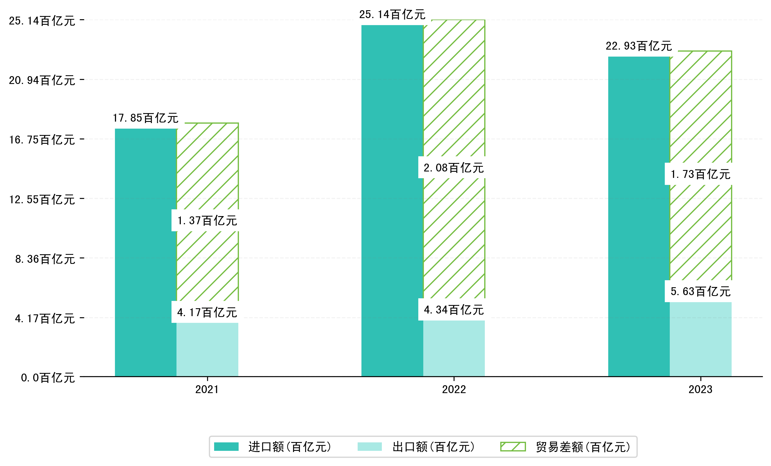 以人民币计,2023年1月北京市贸易差额为1729,4683,6445万元(贸易逆差),相比上月增加了374,4086,2760万元,即50,7240,7305万美元;相比上年同期增加了349,6417,1287万元,同比增加-16.82%。