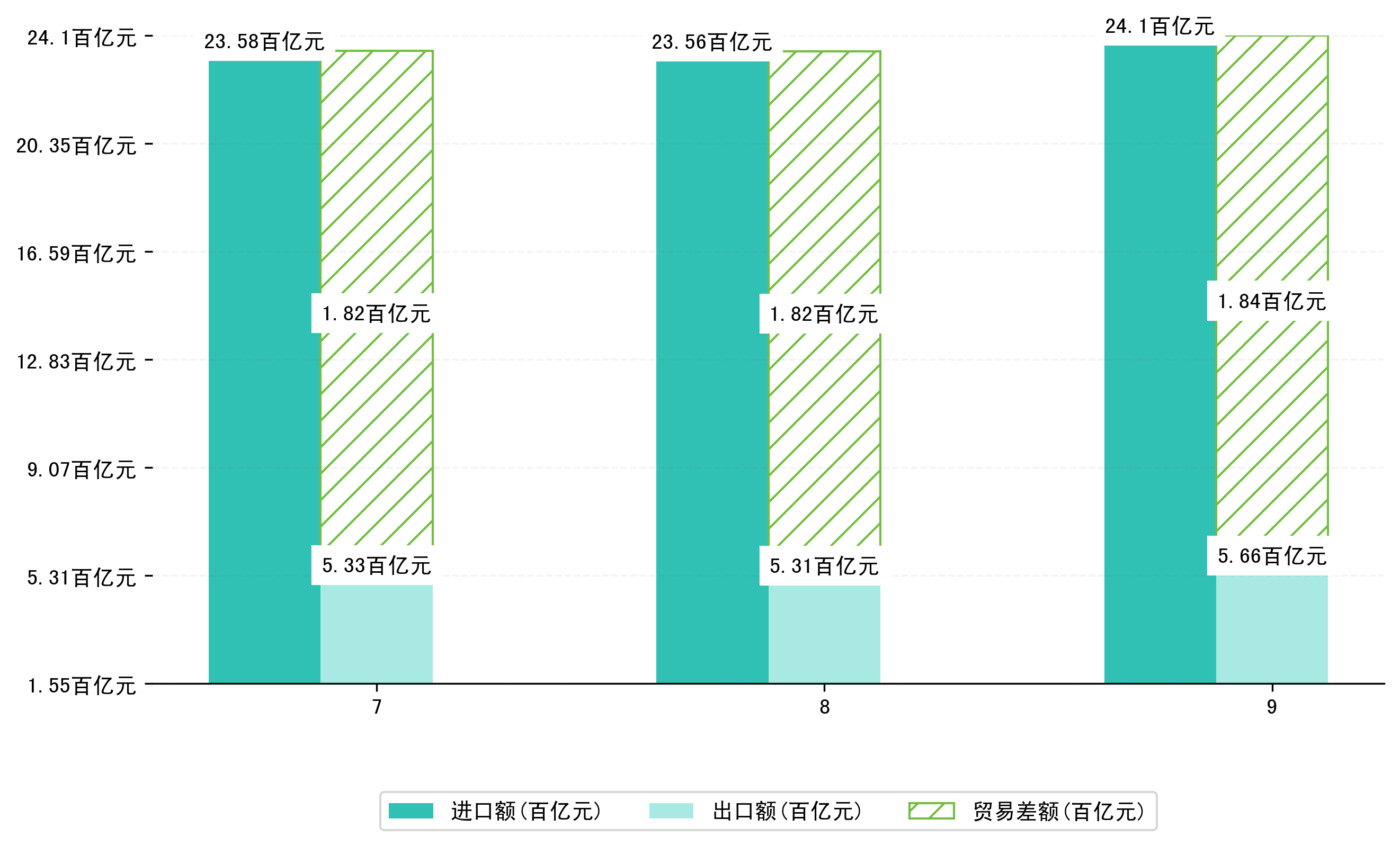 以美元计,2025年9月北京市贸易差额为258,3458,3302万美元(贸易逆差),相比上月减少了3,2827,3914万美元;相比上年同期增加了15,8368,2469万美元,同比增加-5.78%。