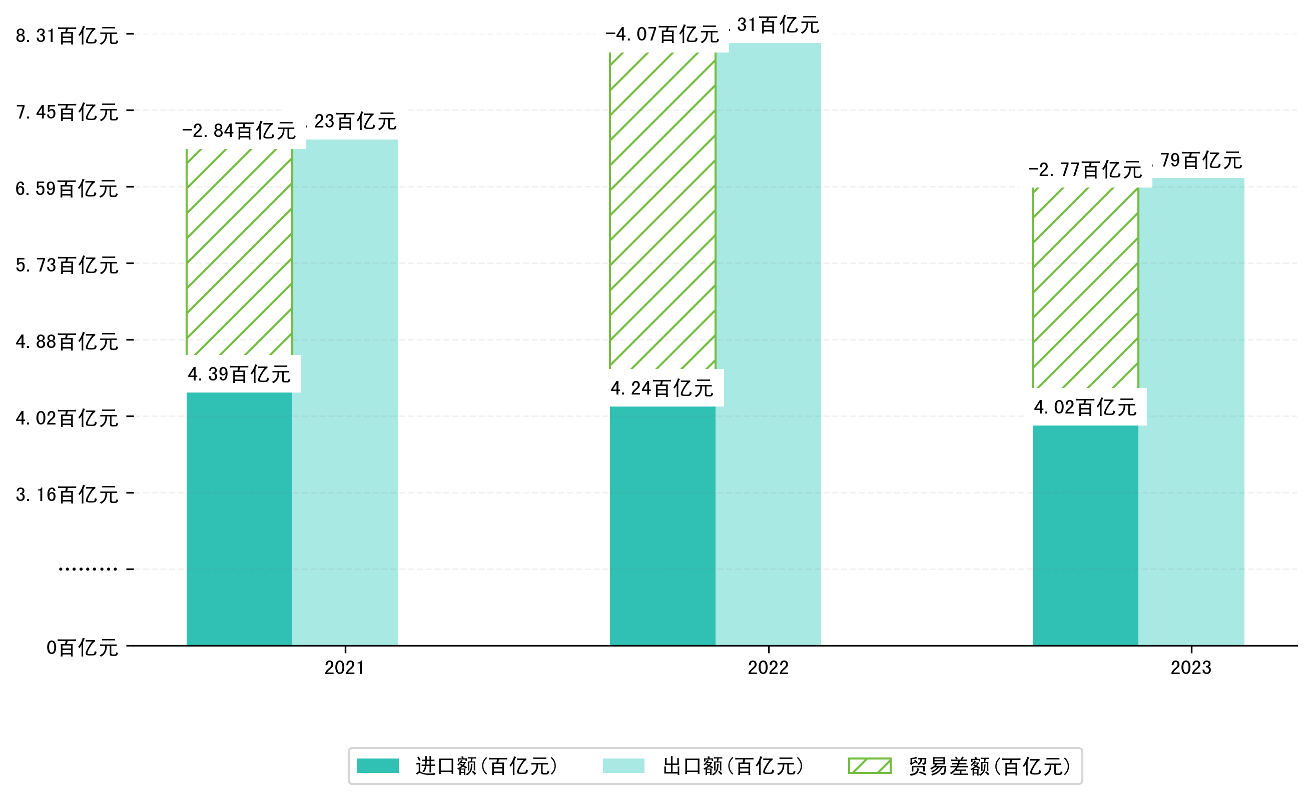 以人民币计,2023年2月重庆市贸易差额为122,3140,0772万元(贸易顺差),相比上月减少了32,5853,2003万元,即4,1882,0232万美元;相比上年同期减少了63,1996,5444万元,同比减少-34.07%。