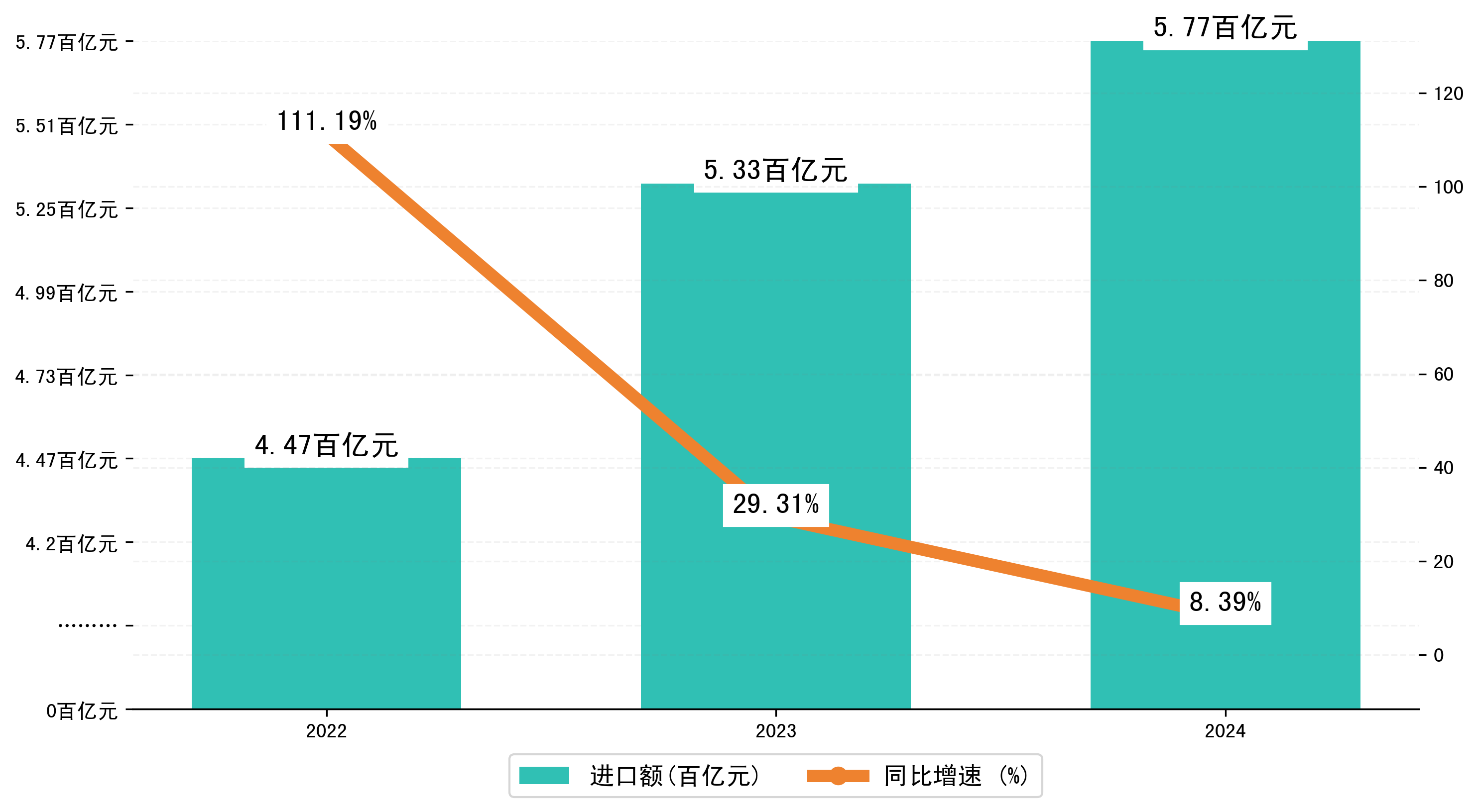 以人民币计,2024年1-4月海南省进口额为577,4915.4038万元,相比上年同期增加了44,7176.3201万元,同比增加了9.00%。