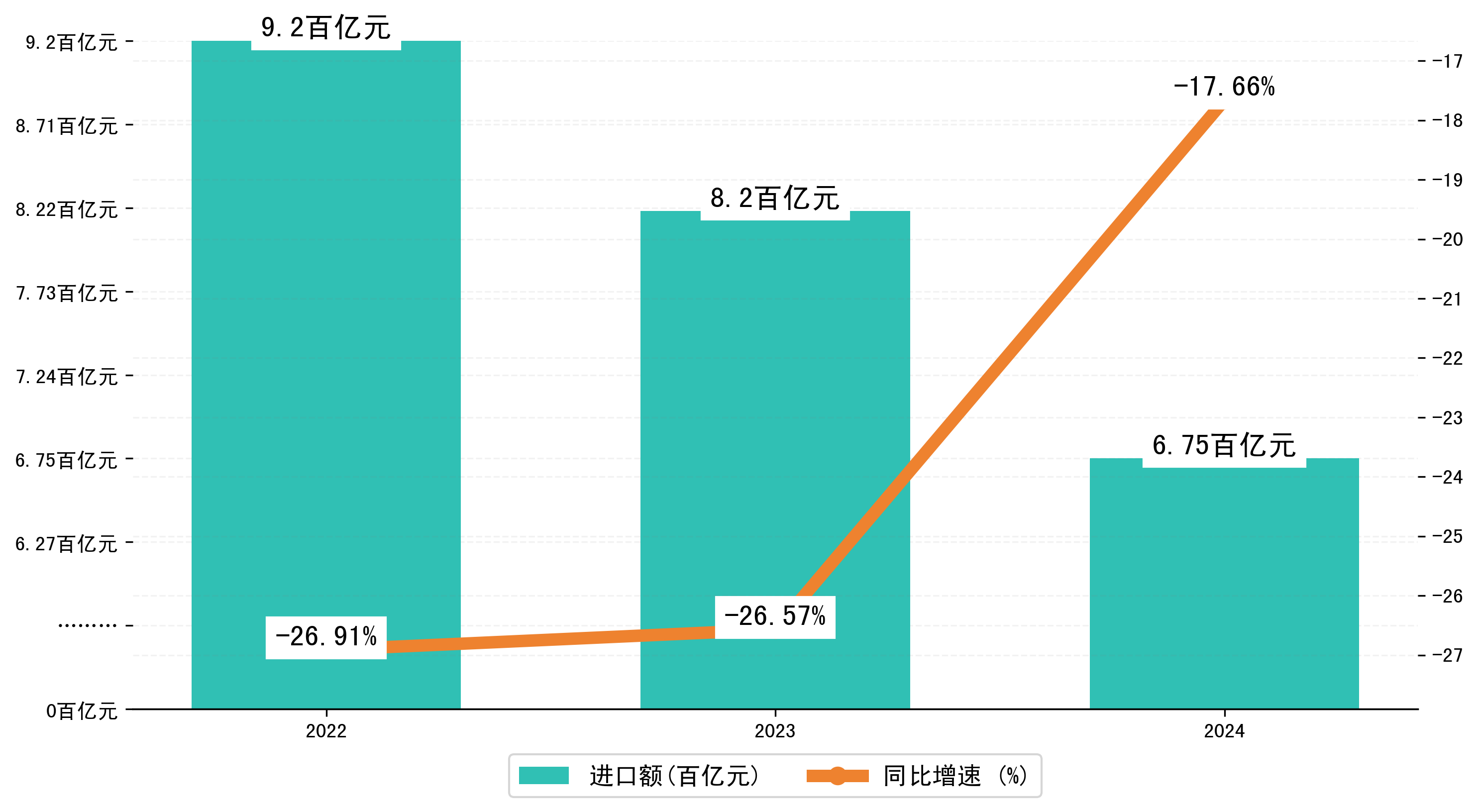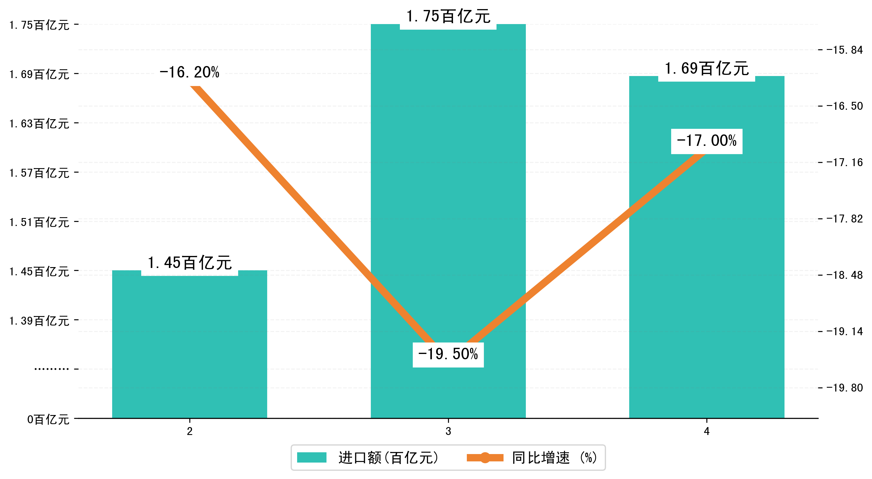 以人民币计,2024年1-4月重庆市进口额为675,4759.3497万元,相比上年同期减少了144,8325.6426万元,同比减少了-17.00%。