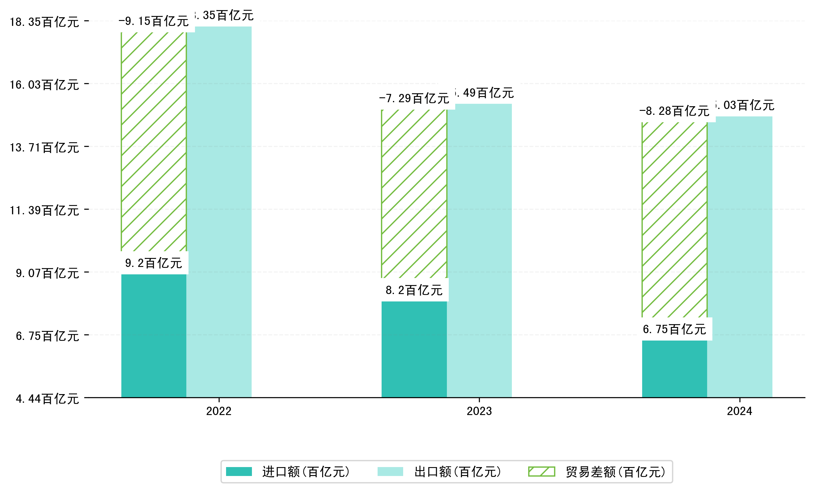 以人民币计,2024年4月重庆市贸易差额为249,4249,1964万元(贸易顺差),相比上月增加了2,1641,3658万元,即3411,9748万美元;相比上年同期减少了13,9900,9092万元,同比减少-5.31%。