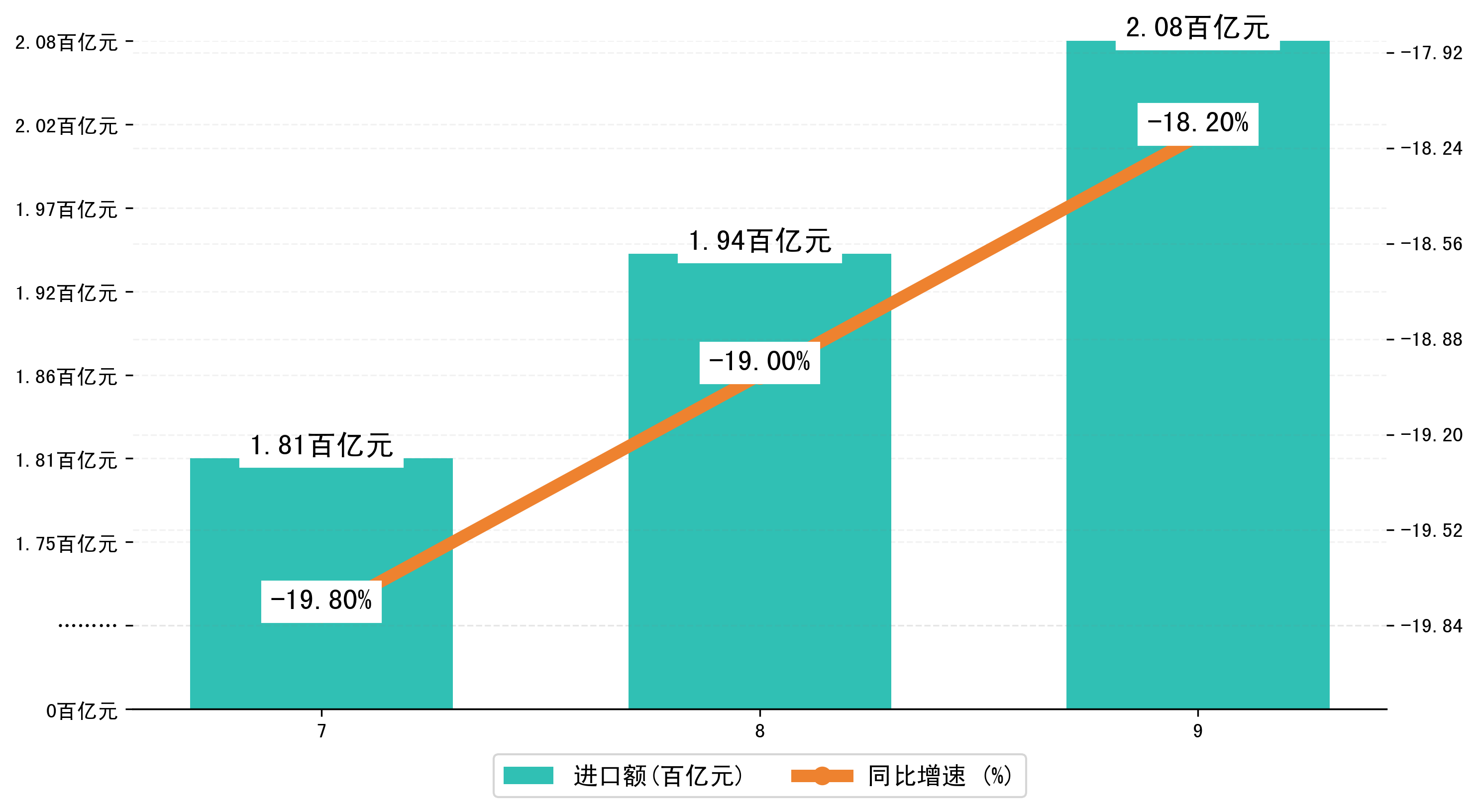 以人民币计,2023年1-9月重庆市进口额为1777,7511.5938万元,相比上年同期减少了407,2397.1893万元,同比减少了-18.20%。