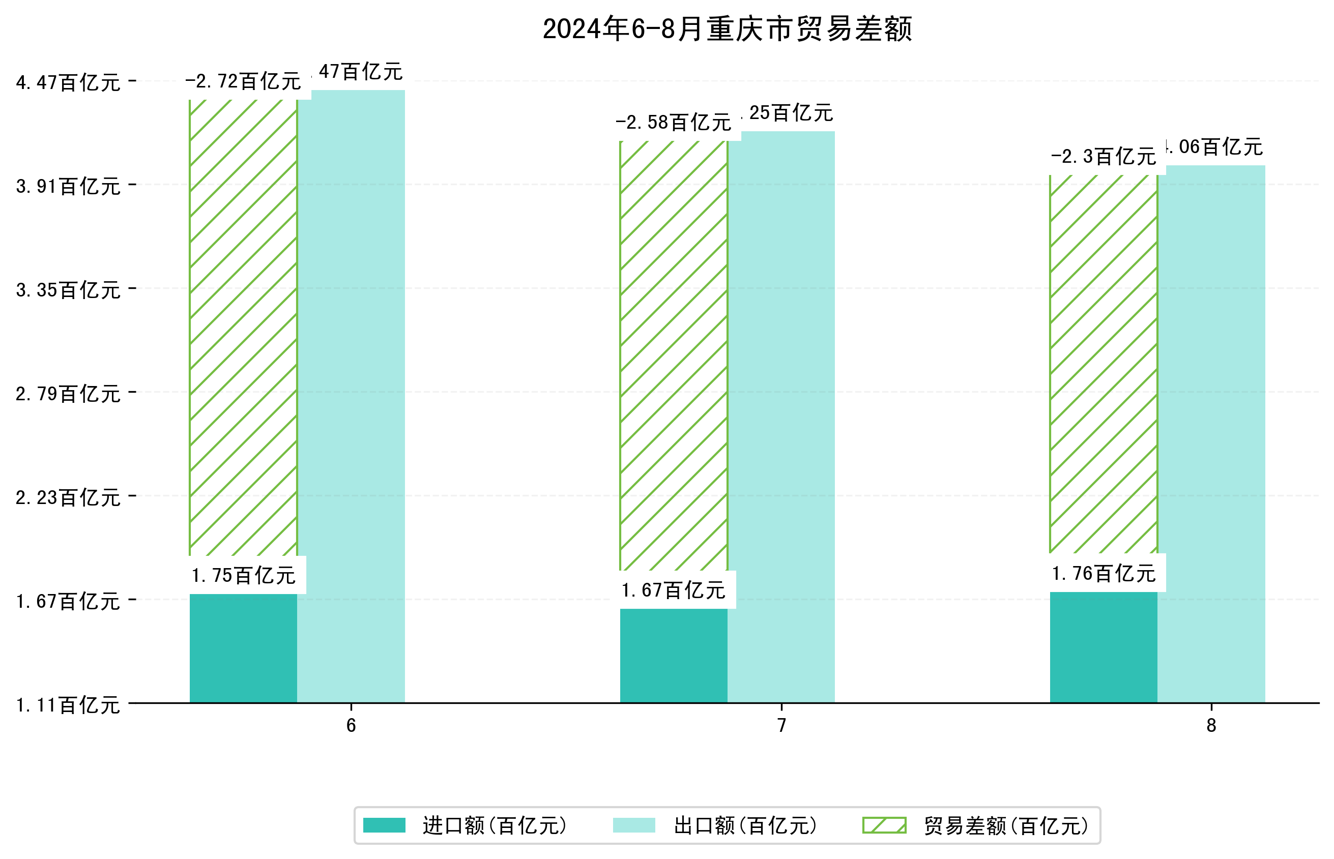 (图四:2024年6-8月重庆市贸易差额)