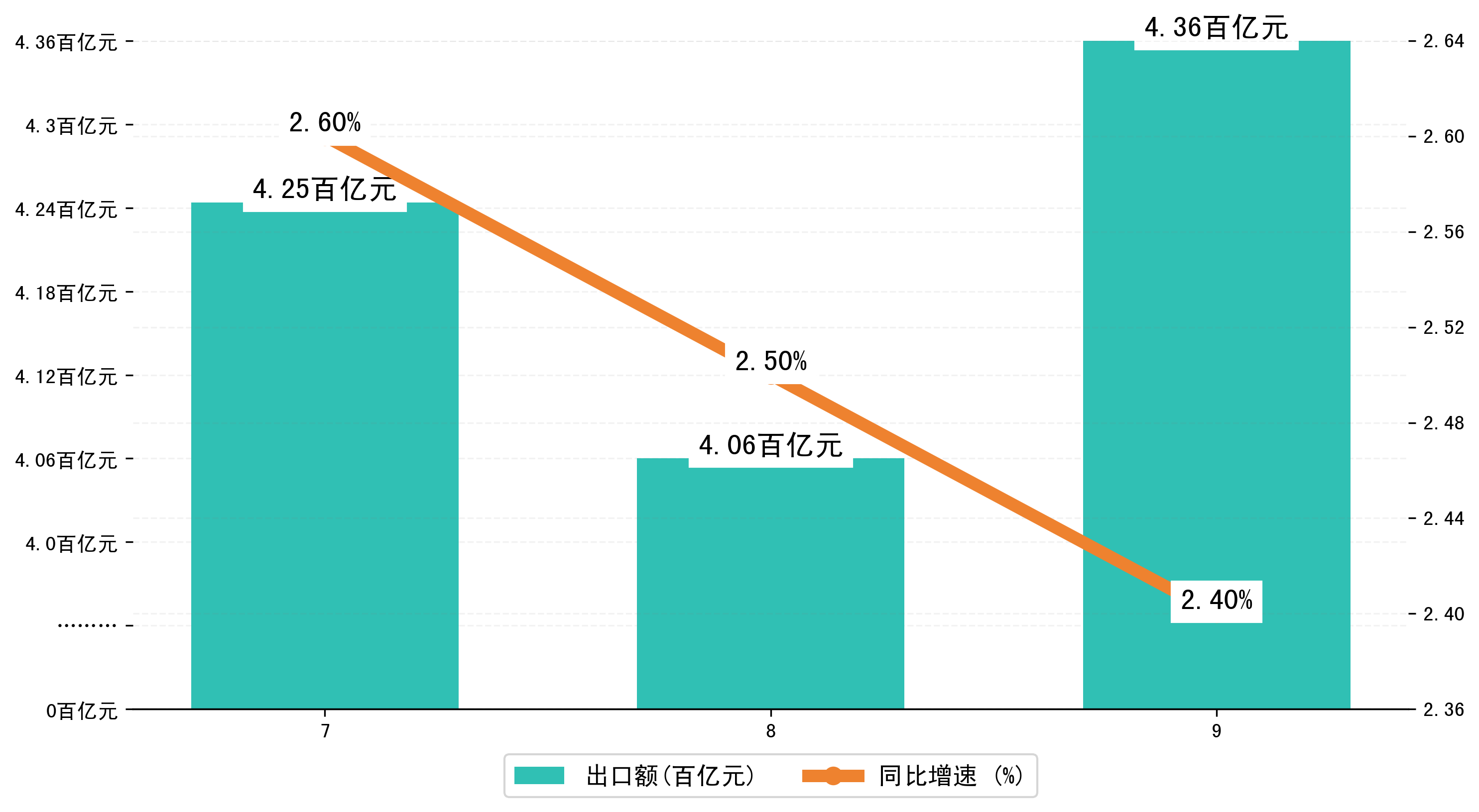 一、2024年9月重庆市单月出口总额及进出口差额统计分析