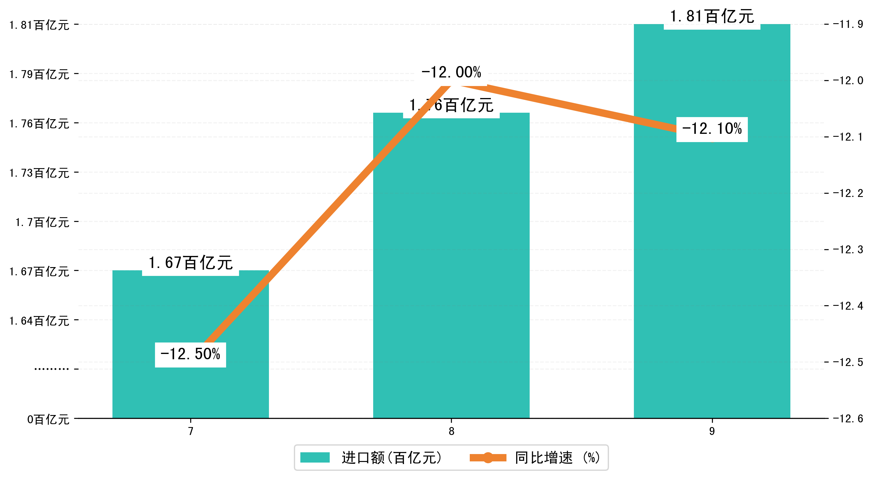 以人民币计,2024年9月重庆市进口额为181,4211.4176万元,相比上月增加了5,1796.536万元;相比上年同期减少了26,2802.4526万元,同比减少了-12.10%。