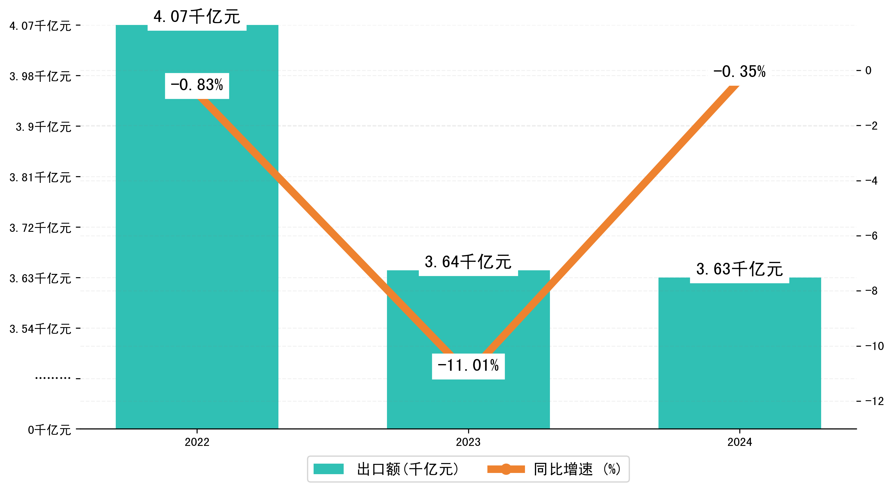 以美元计,2024年1-9月重庆市出口额为509,8814.974万美元,相比上年同期减少了11,4827.1034万美元,同比增加0.50%。