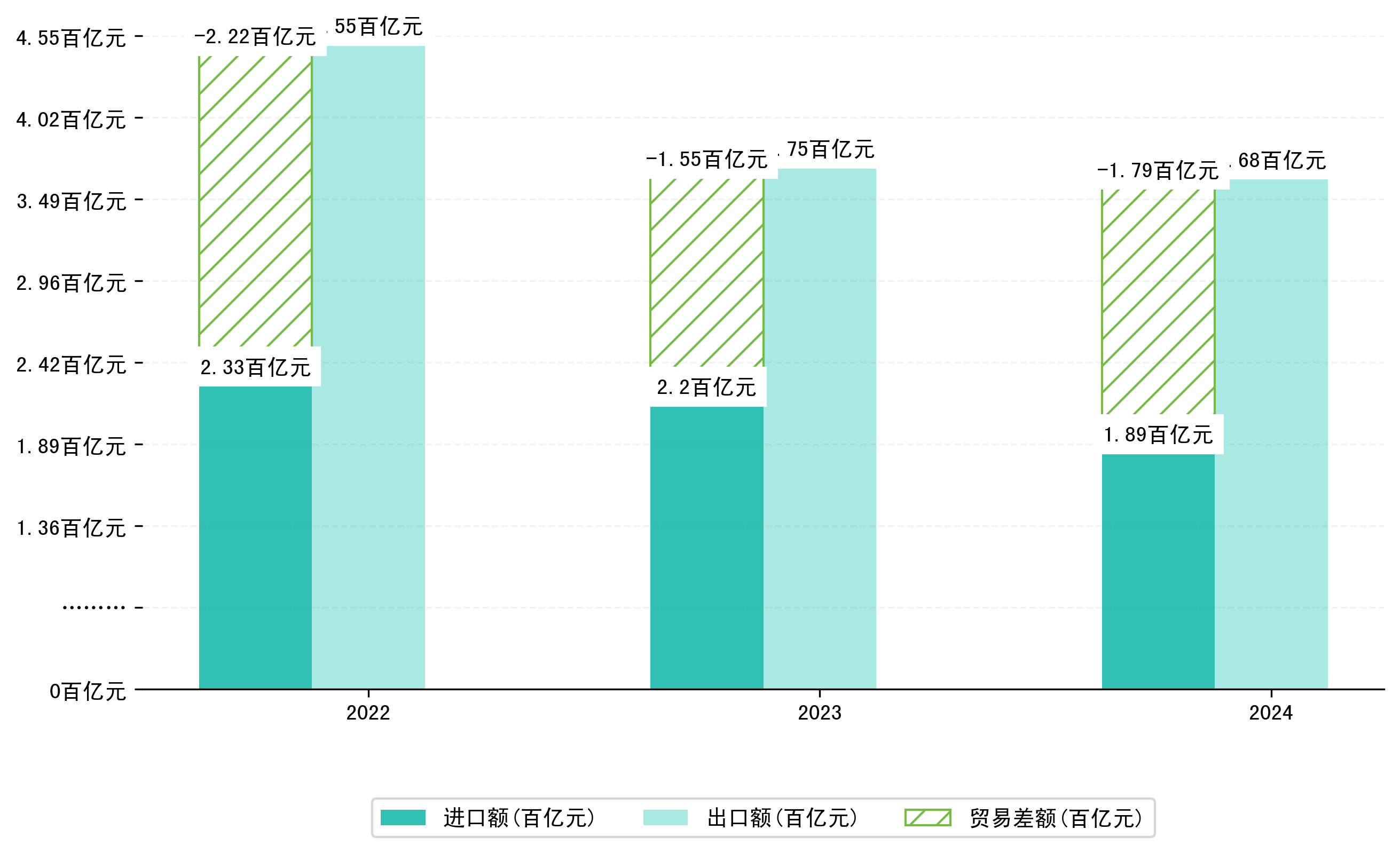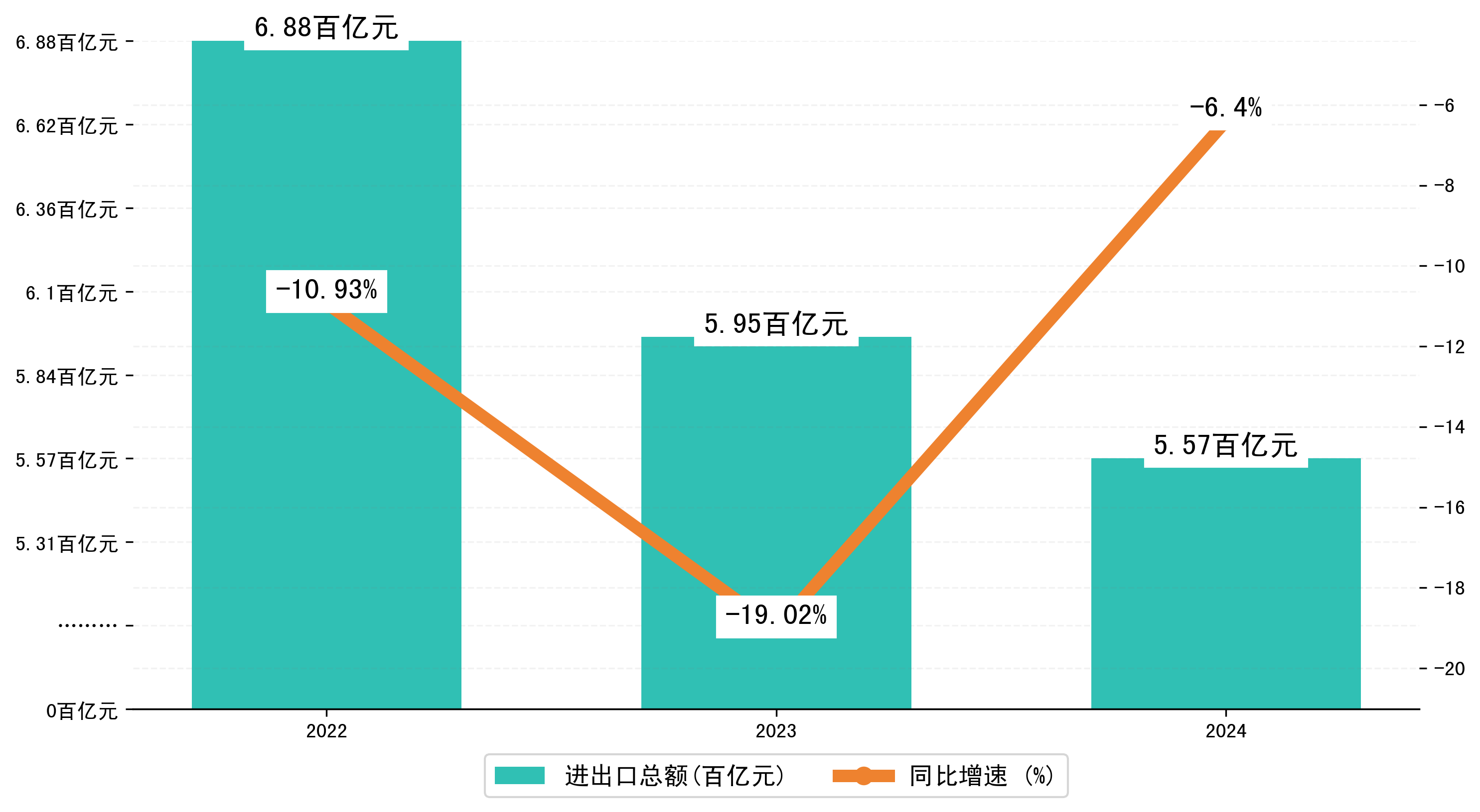 以人民币计,2024年1月重庆市贸易差额为178,7545,8189万元(贸易顺差),相比上月减少了66,1252,8019万元,即9,0533,2163万美元;相比上年同期增加了23,8552,5414万元,同比增加15.4%。