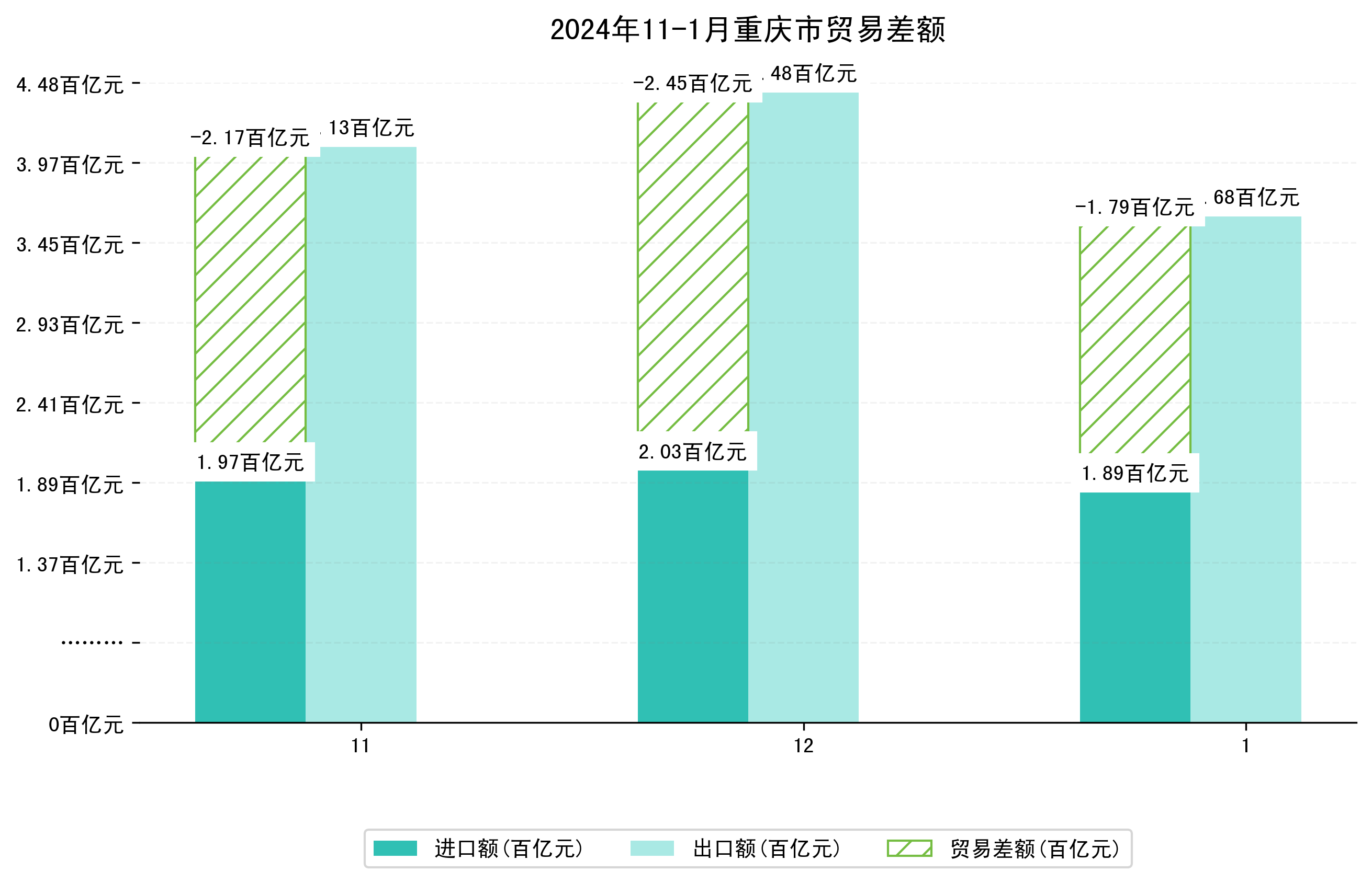 2024年1月重庆市进出口总额及进出口差额统计分析