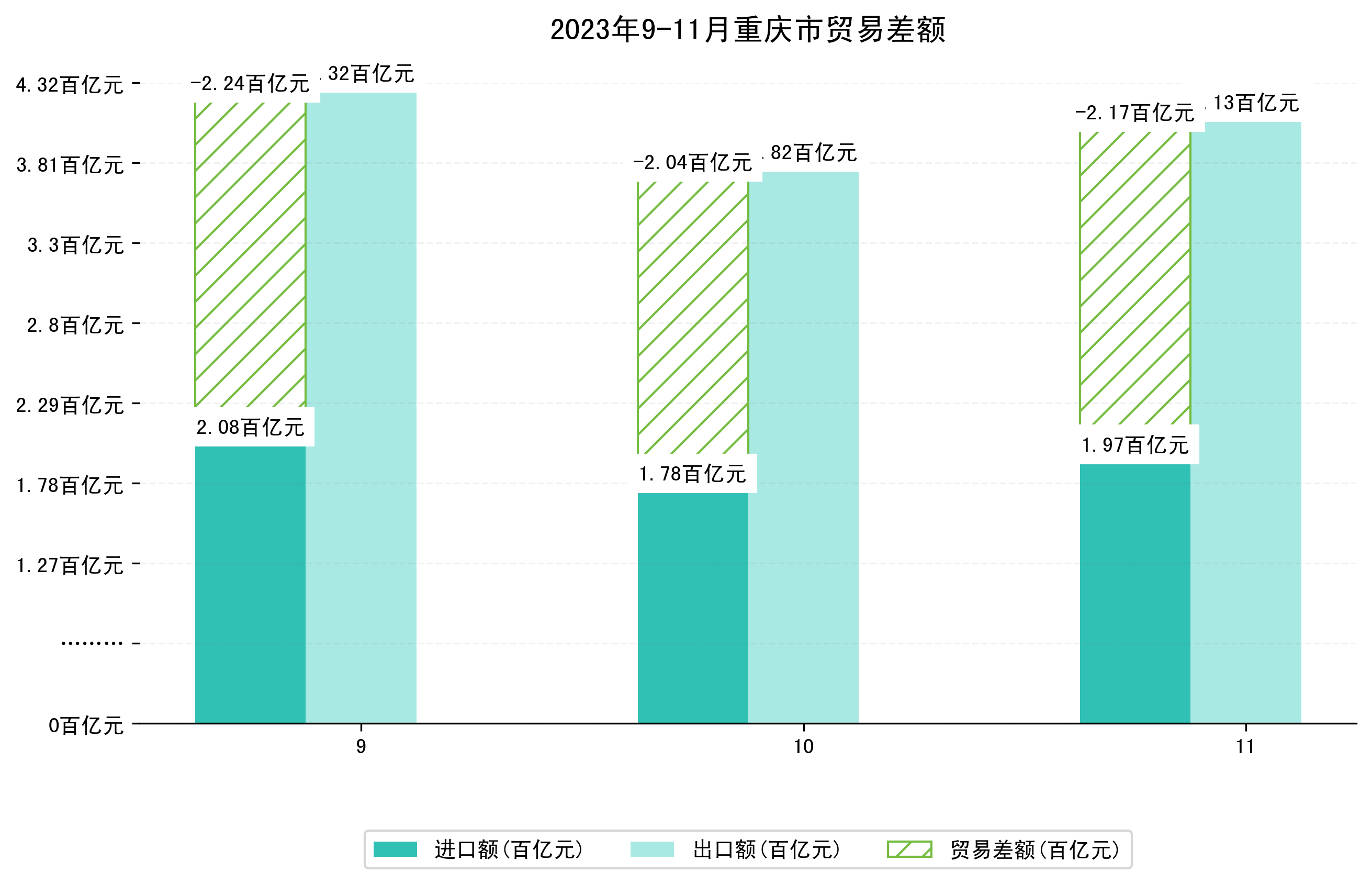 2023年11月重庆市进出口总额及进出口差额统计分析