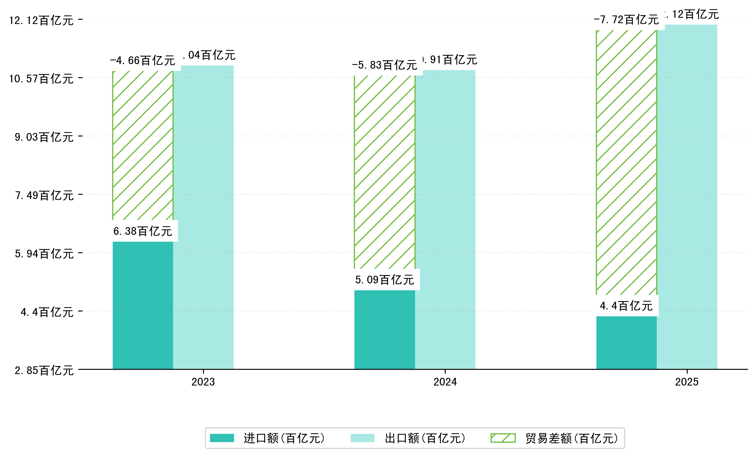 以美元计,2025年1-3月重庆市贸易差额为107,4447,9572万美元(贸易顺差),相比上年同期增加了25,5316,6813万美元,同比增加31.17%。