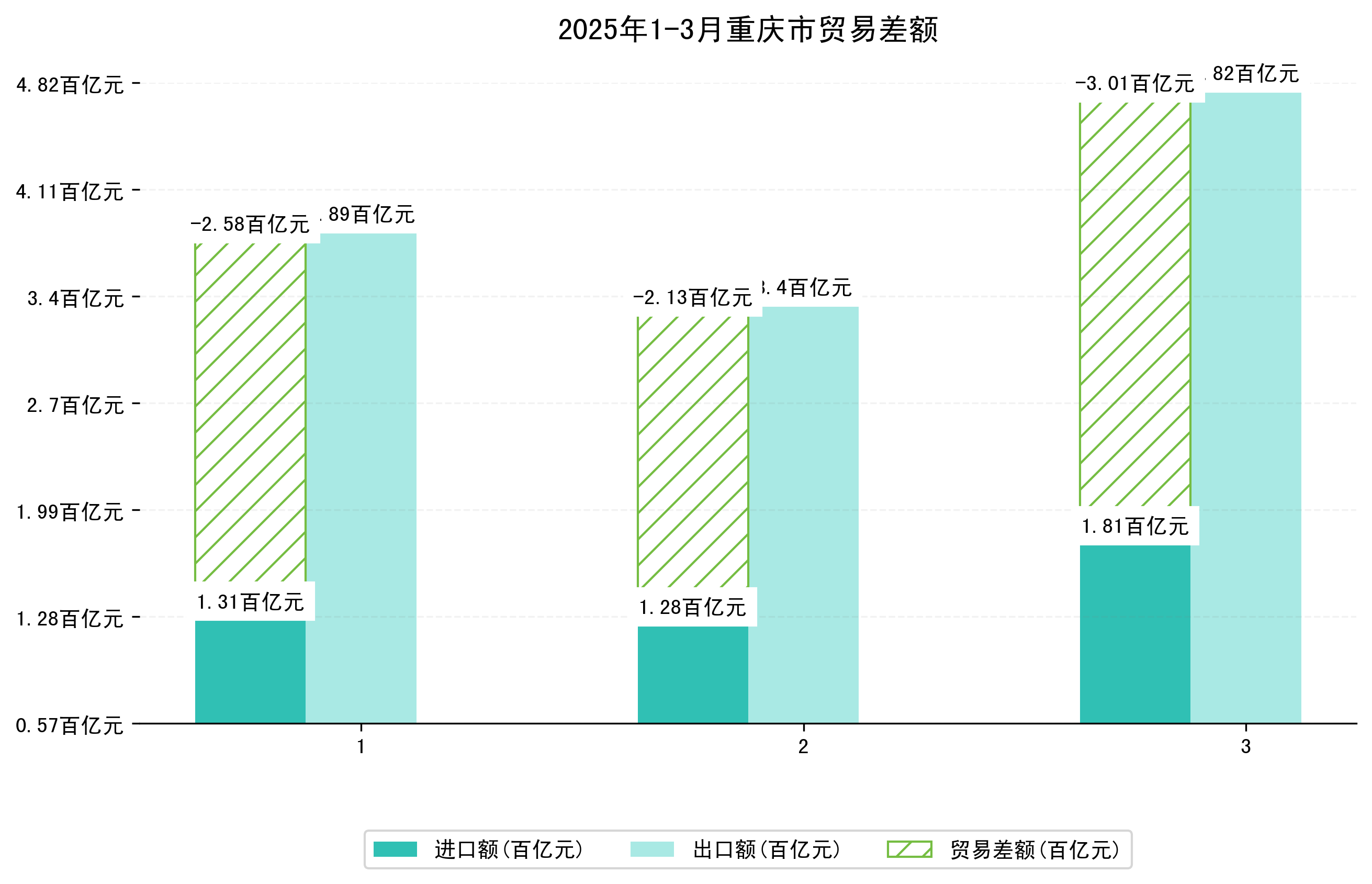 2025年3月重庆市进出口总额及进出口差额统计分析