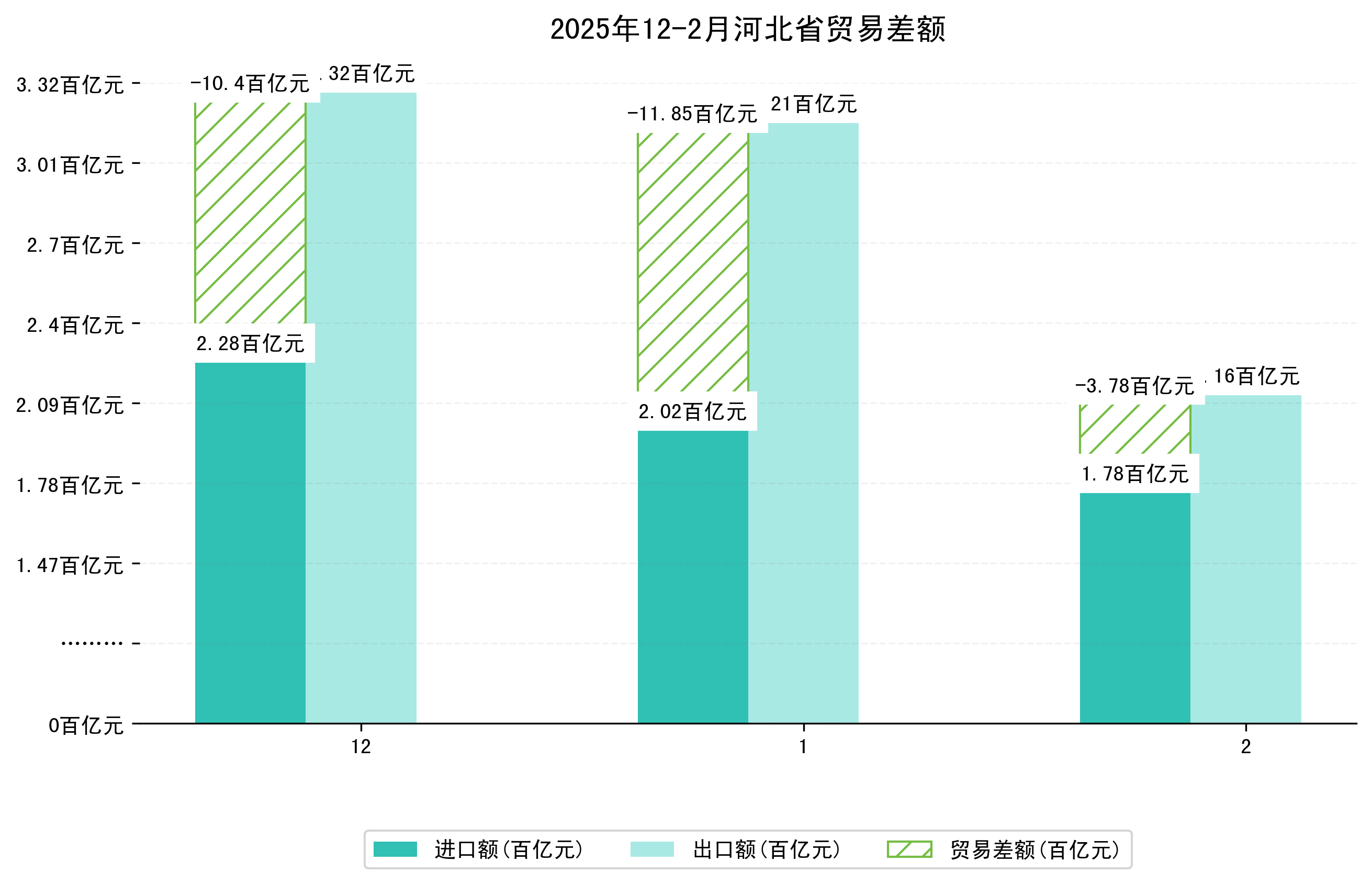 一、2025年2月河北省单月出口总额及进出口差额统计分析