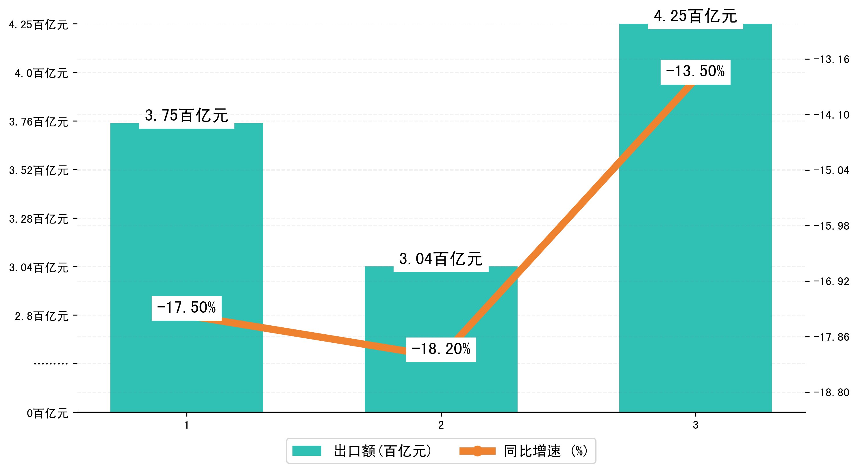 二、重庆市前3月累计出口总额及差额统计