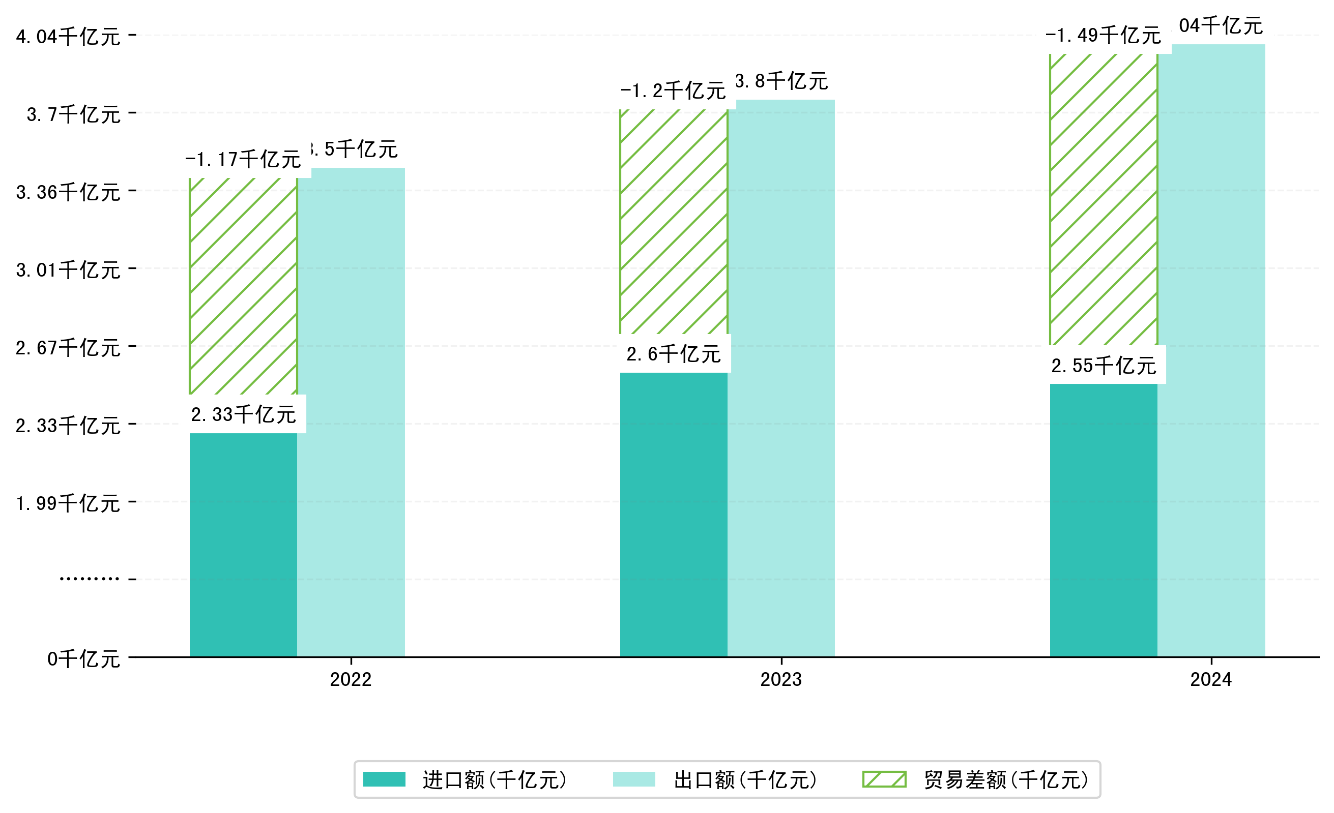 以人民币计,2024年1-4月福建省贸易差额为1494,9093,9421万元(贸易顺差),相比上年同期增加了294,2222,4098万元,同比增加24.5%。