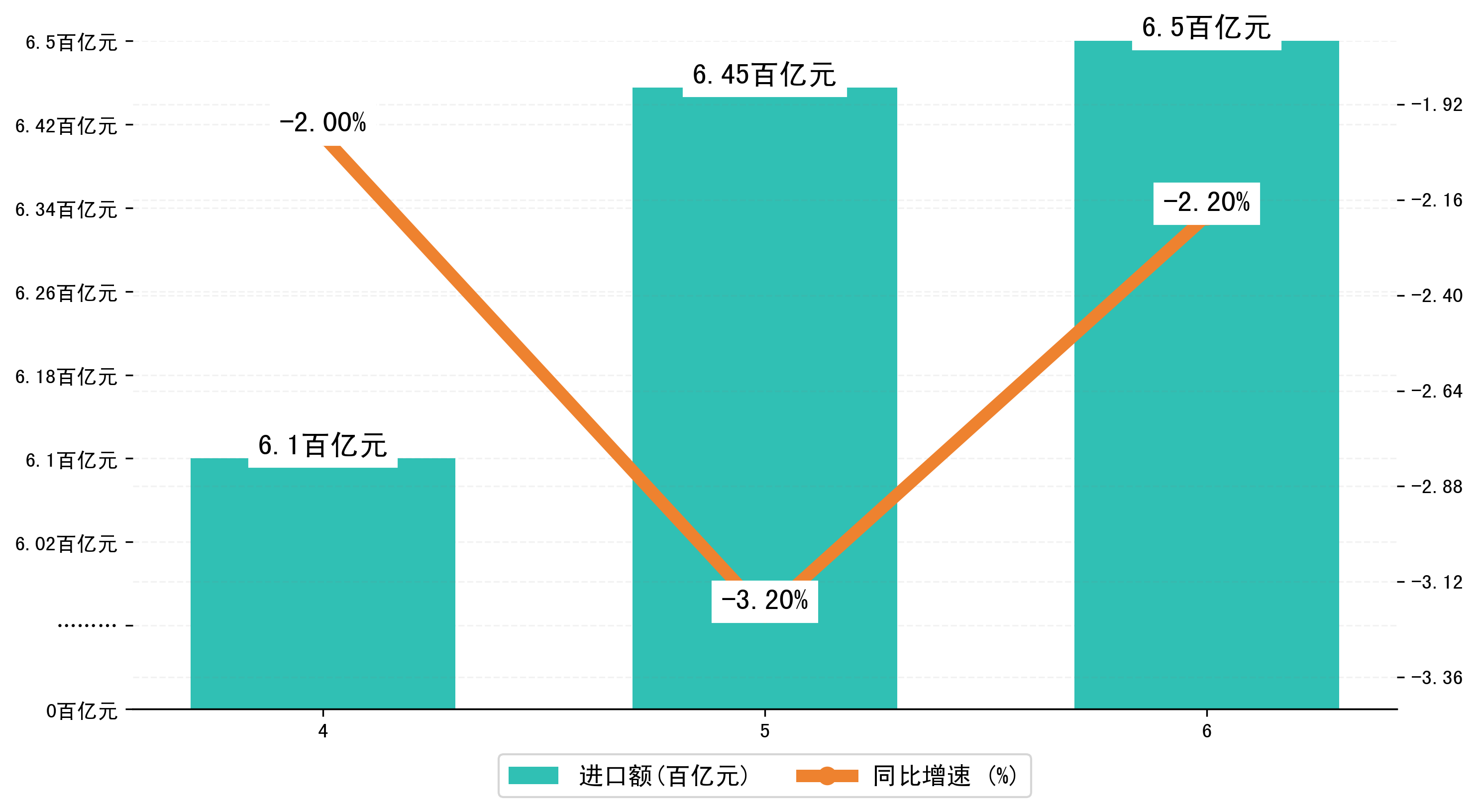 以人民币计,2024年6月福建省进口额为649,7649.7067万元,相比上月增加了4,4567.1017万元;相比上年同期增加了17,5555.377万元,同比减少了-2.20%。