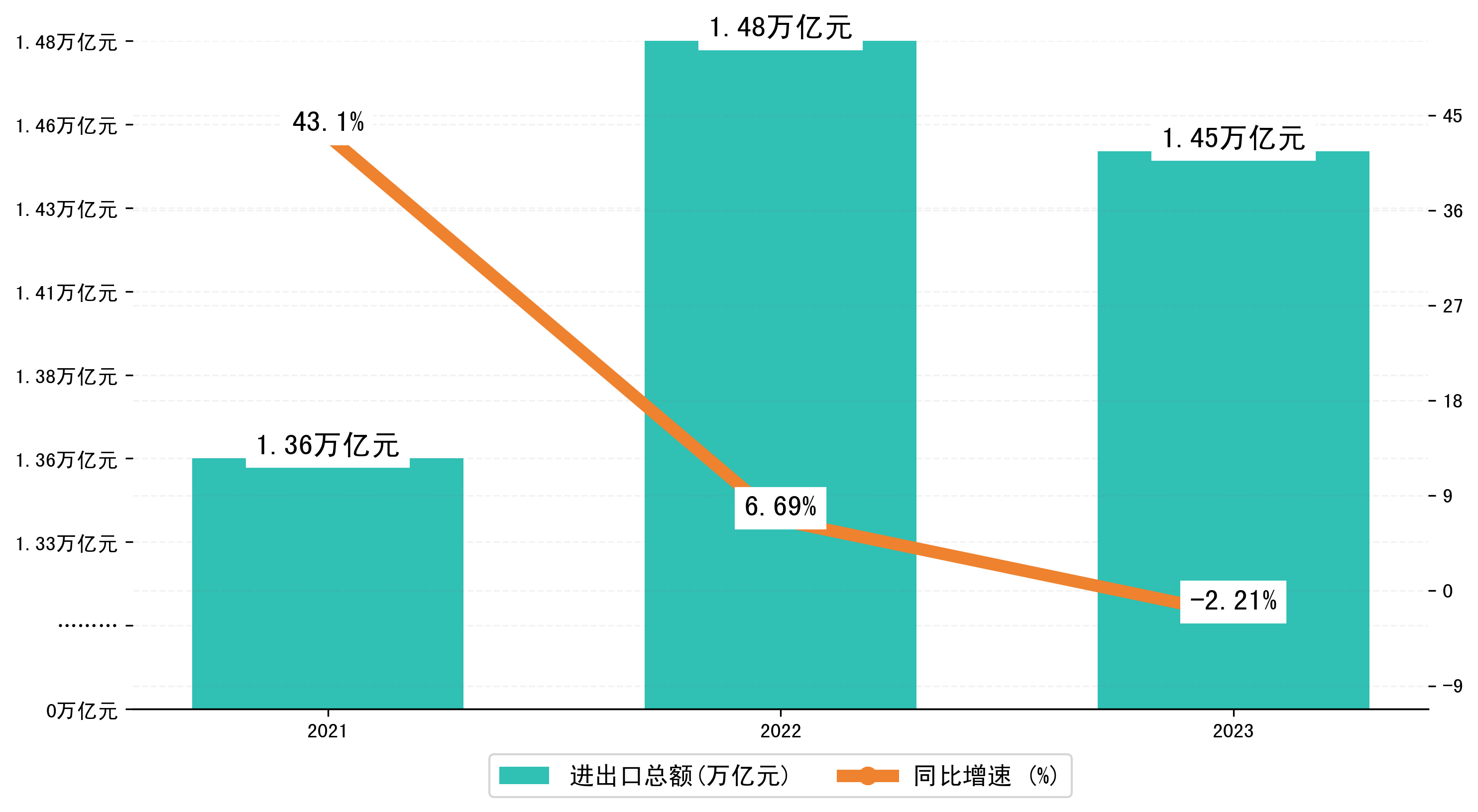 以人民币计,2023年1-9月福建省进出口总额为1,4504,6998.3573万元,相比上年同期减少了328,0002.644万元,同比减少了-1.70%。