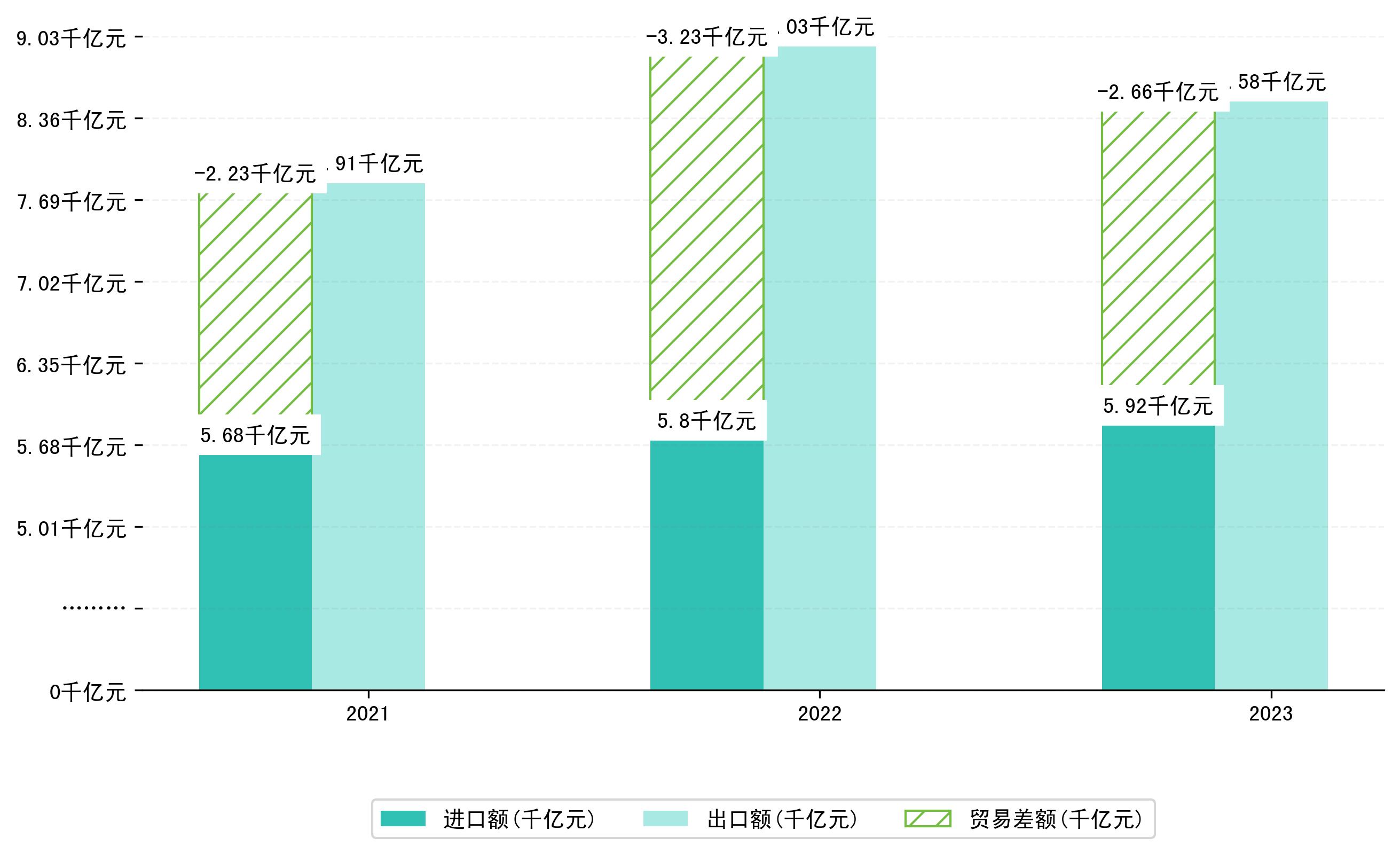 以美元计,2023年1-9月福建省进口额为849,4583.9865万美元,相比上年同期增加了37,3481.2427万美元,同比增加-3.30%。