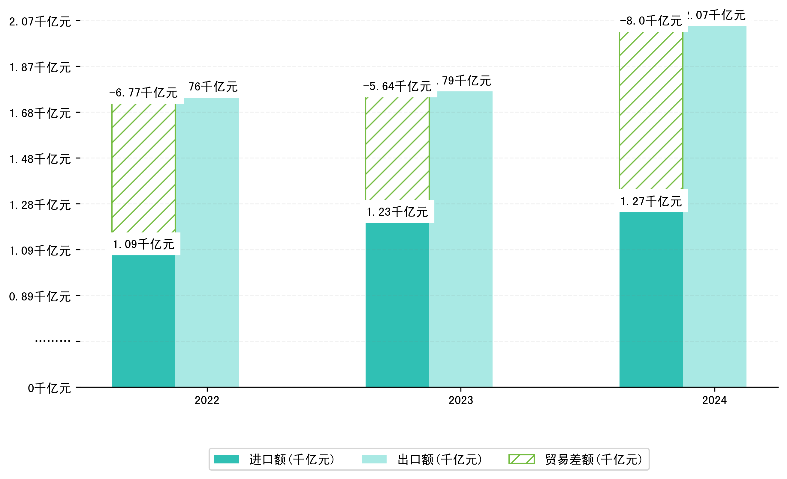 以人民币计,2024年1-2月福建省贸易差额为799,7300,0079万元(贸易顺差),相比上年同期增加了235,9145,4210万元,同比增加41.84%。