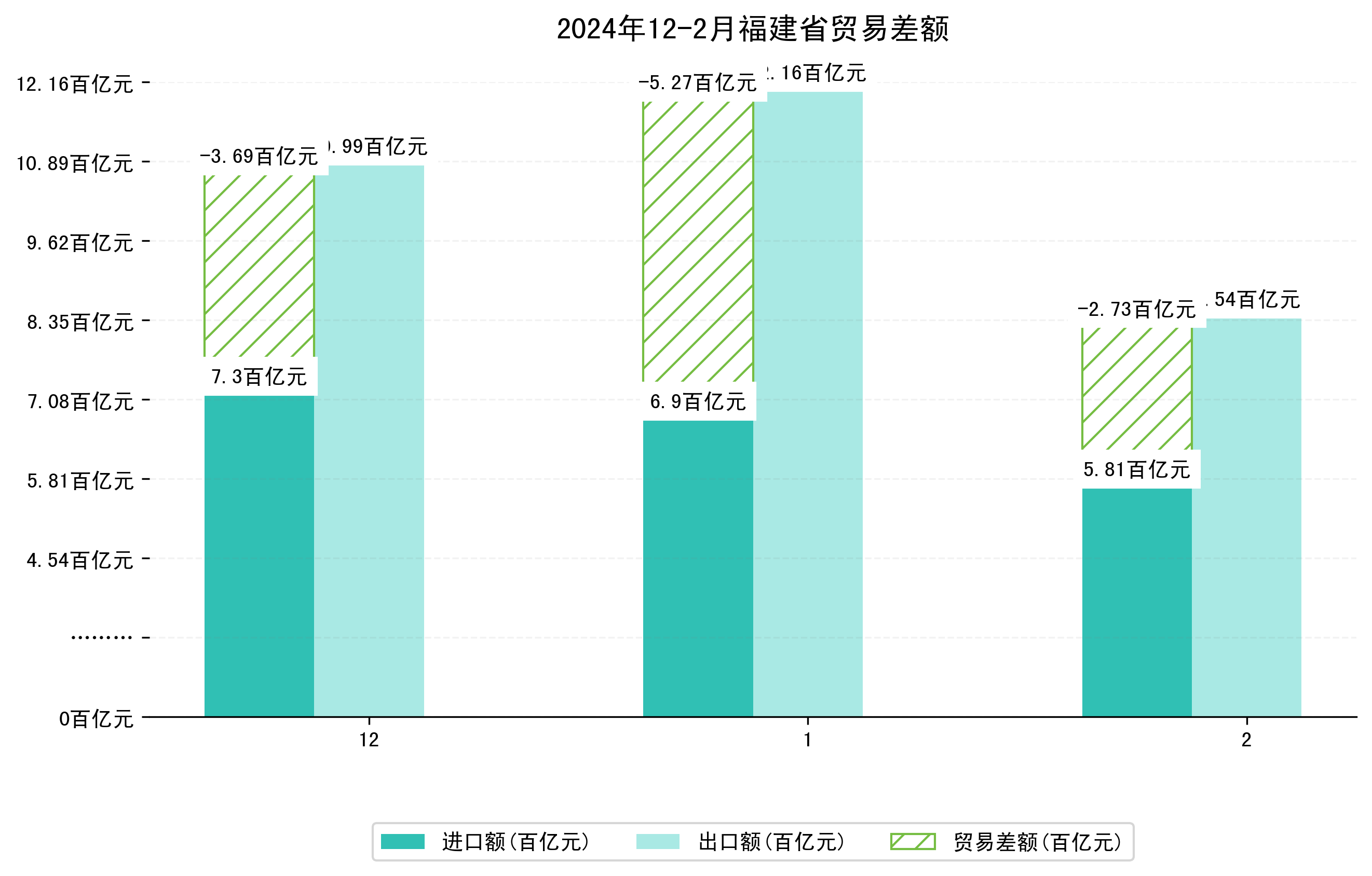 以美元计,2024年1-2月福建省贸易差额为112,5473,7000万美元(贸易顺差),相比上年同期增加了30,8029,0533万美元,同比增加37.68%。