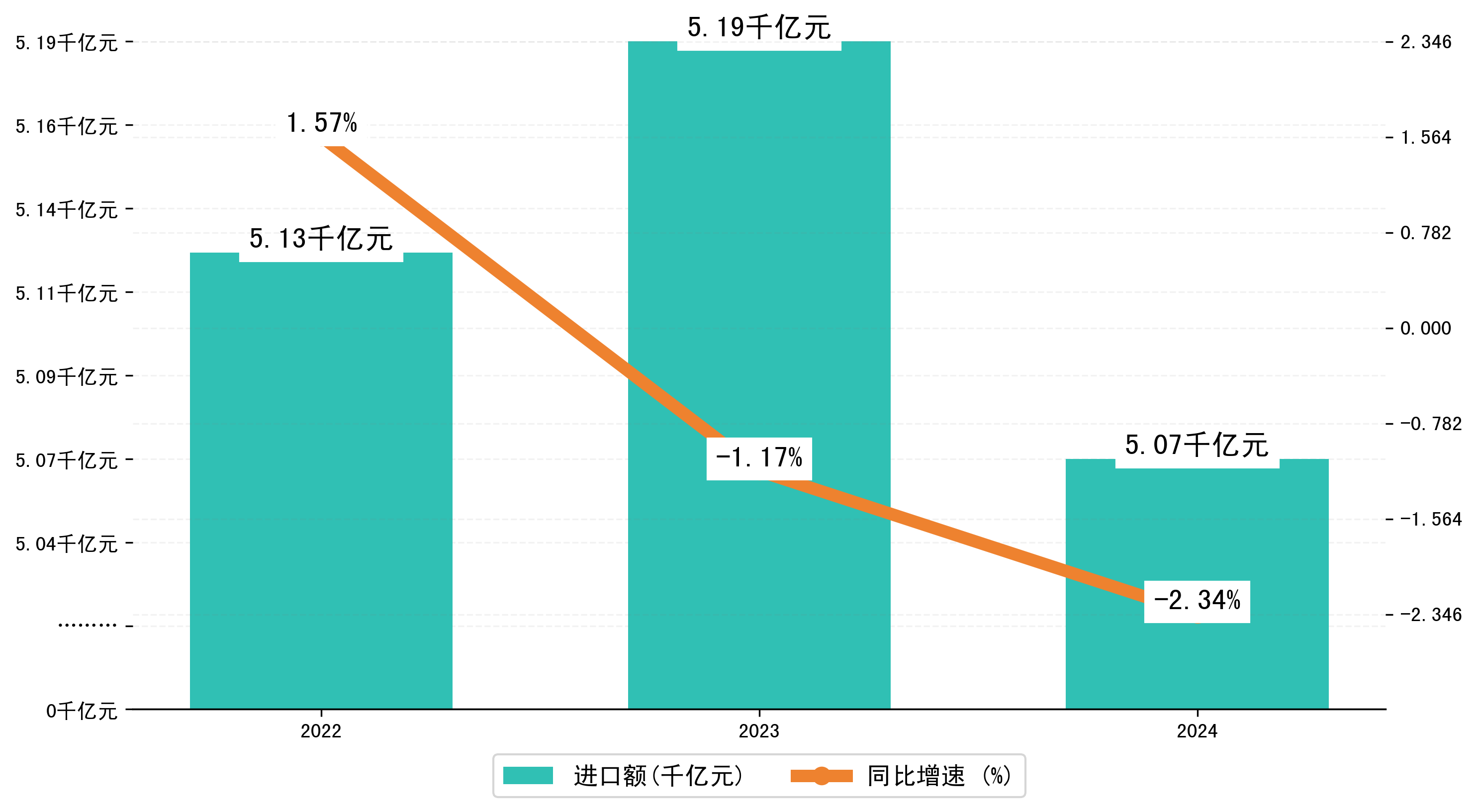 以人民币计,2024年1-8月福建省进口额为5065,9185.1083万元,相比上年同期减少了121,3457.156万元,同比减少了-2.00%。