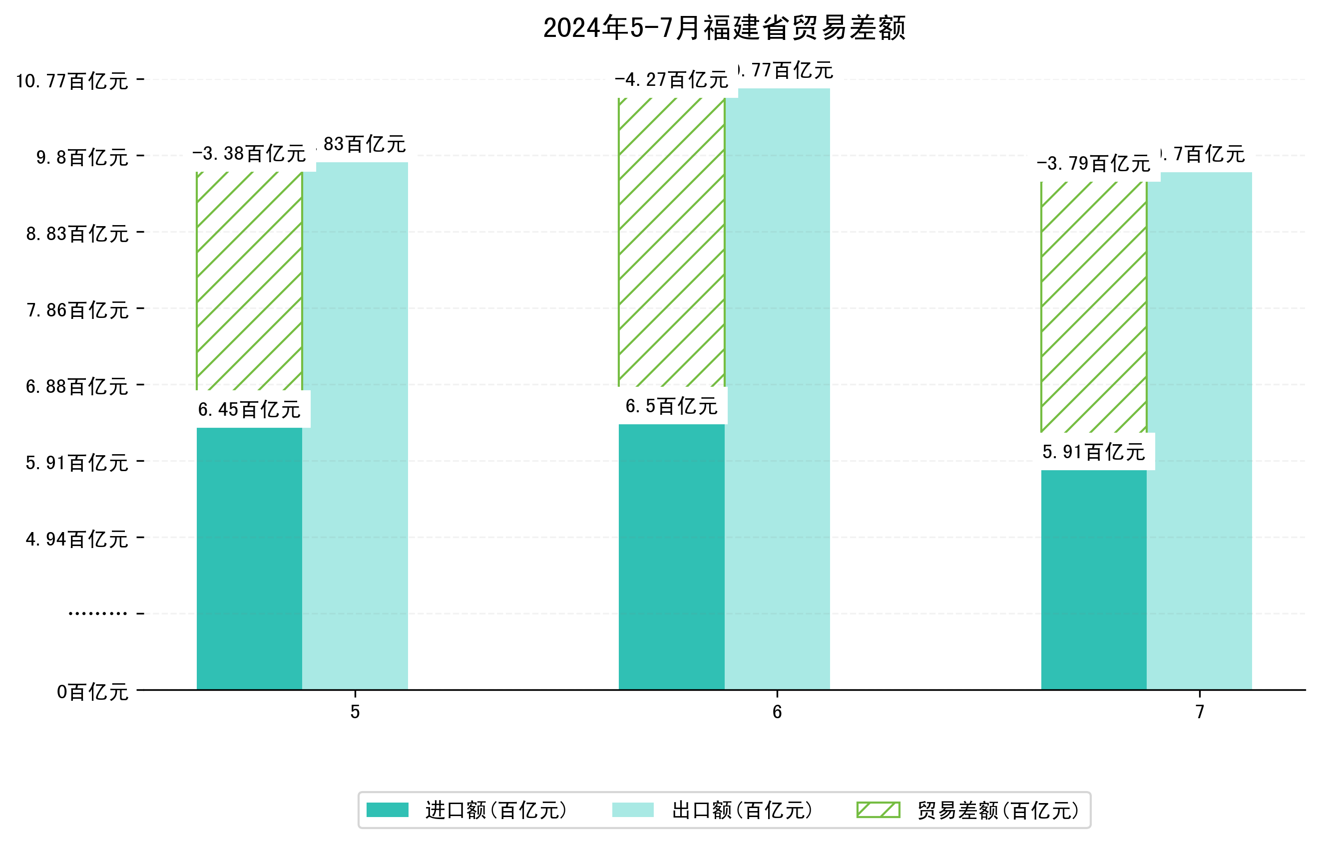 一、2024年7月福建省单月出口总额及进出口差额统计分析