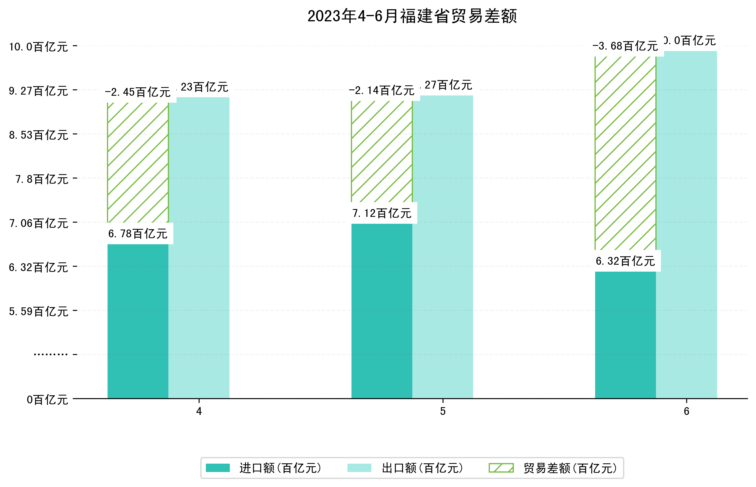 一、2023年6月福建省单月出口总额及进出口差额统计分析