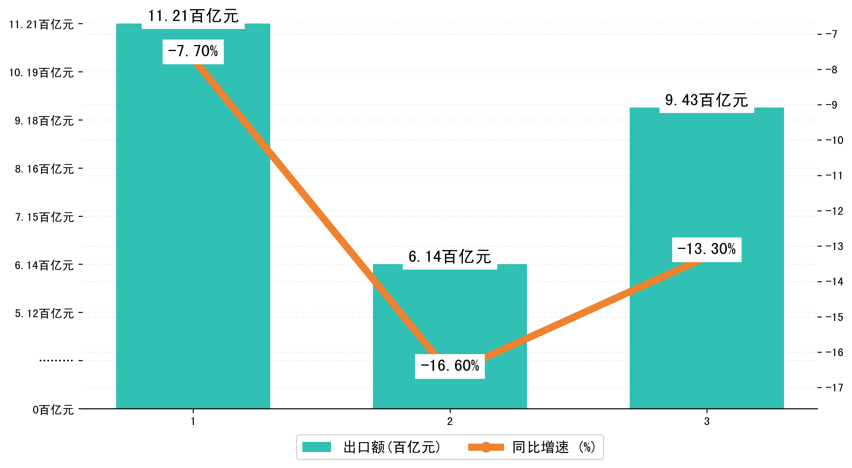 以人民币计,2025年3月福建省出口额为943,2523.2805万元,相比上月增加了329,7397.1966万元;相比上年同期减少了67,2369.575万元,同比减少了-13.30%。