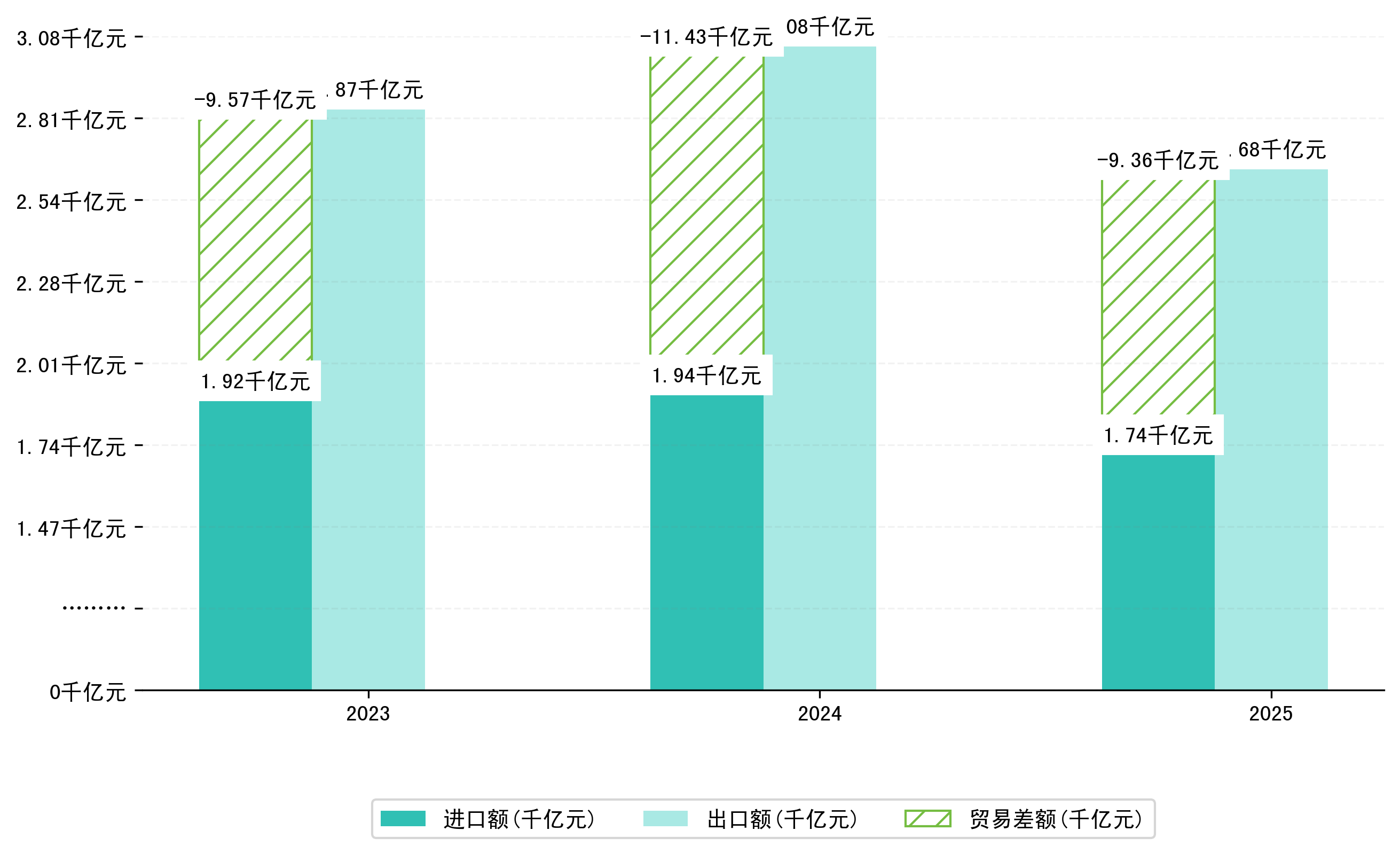 以人民币计,2025年1-3月福建省贸易差额为936,4407,7623万元(贸易顺差),相比上年同期减少了206,1403,2649万元,同比减少-18.04%。